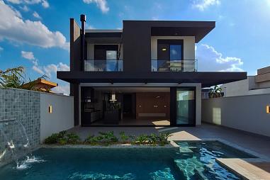 Casa com 4 suítes, sendo uma com closet e as demais com armários amplos. Home office, Sala de Tv, sala de jantar e cozinha. Espaço Gourmet com muito espaço e uma bela piscina com cascata de embutida, o que proporciona uma incrível vista de cortina d´água. O imovél está construído em um terreno de 1043 m² e 407 m² de construção. Será entregue com marcenaria.