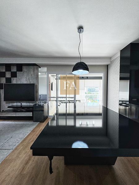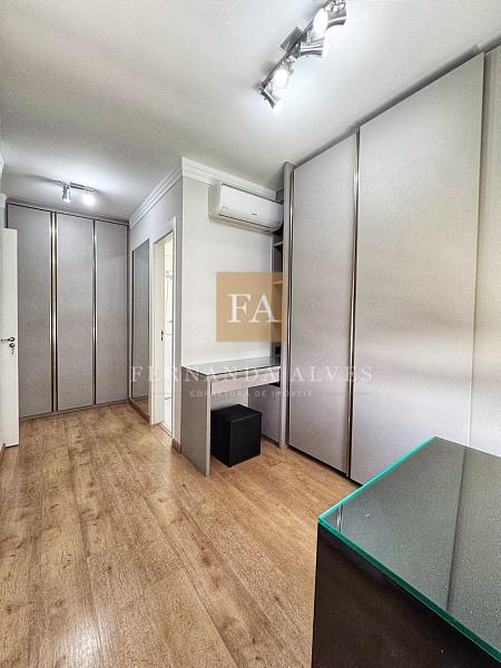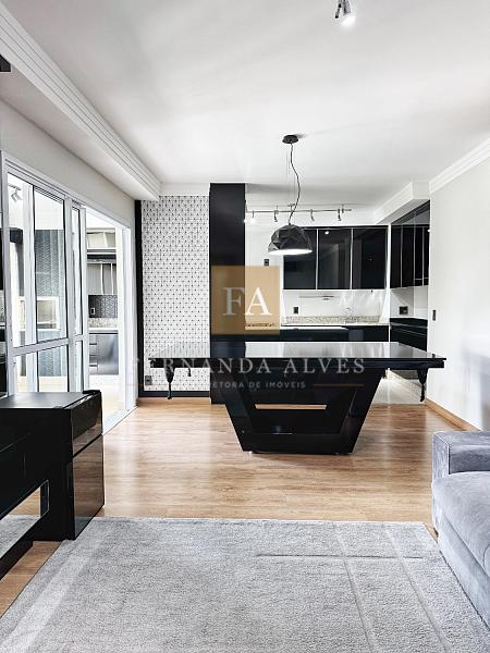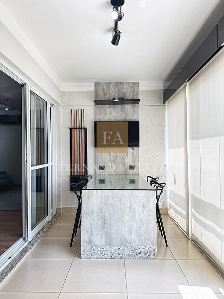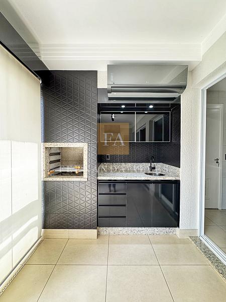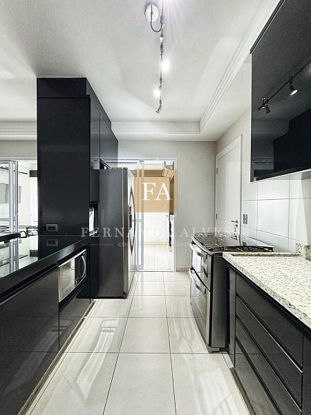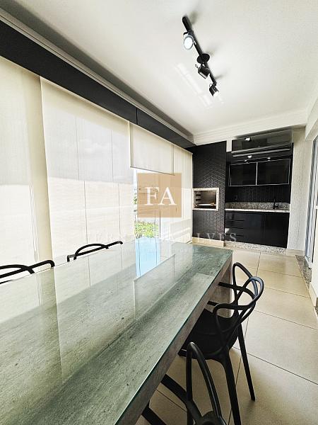 121 metros, 2 suítes completos de armários e climatizados, suíte máster com closet com ar condicionado, 01 lavabo de entrada, cozinha completa de armários, sala de jantar e sala de TV totalmente integrados, varanda gourmet com churrasqueira, banheiro auxiliar, 02 vagas de garagem.