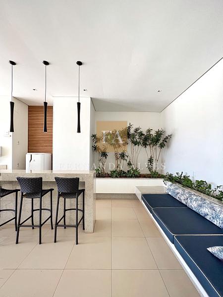 Apartamento com acabamento novo, varanda estendida para o gourmet, totalmente aberto e integrado. Àrea social dispõe de hall de entrada com lavabo, sala de TV e jantar, cozinha e área gourmet com churrasqueira.