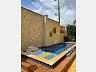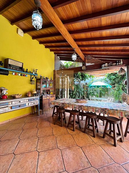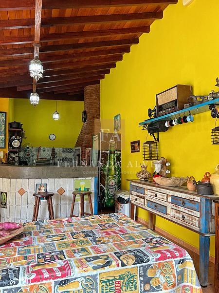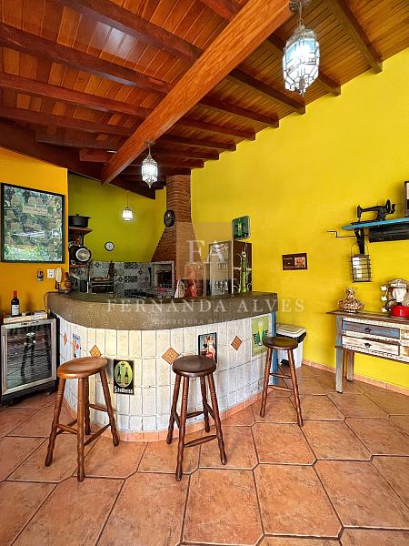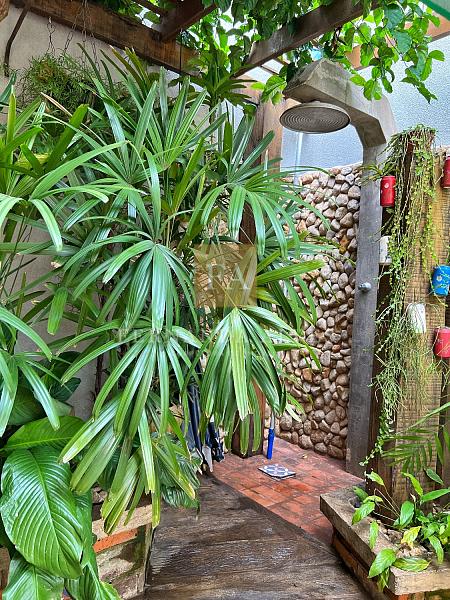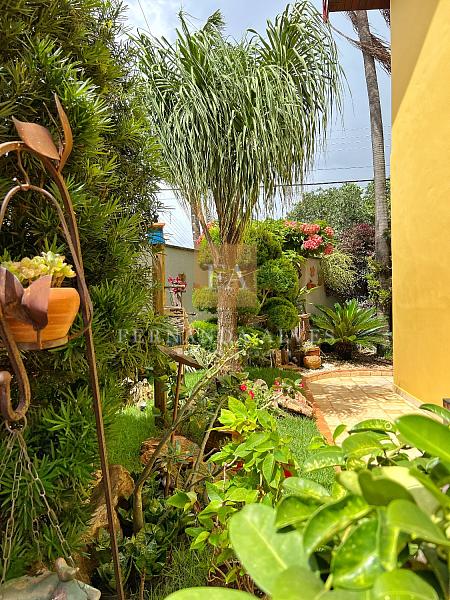 Imóvel com acabamento rústico, detalhes em madeira, recém pintada, belo jardim e excelente localização.