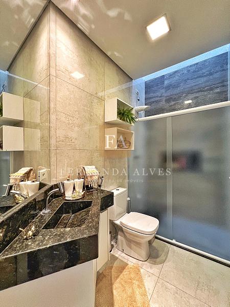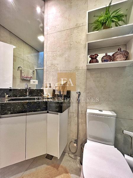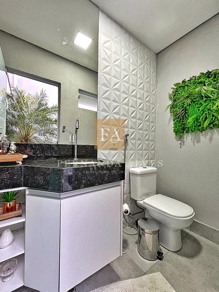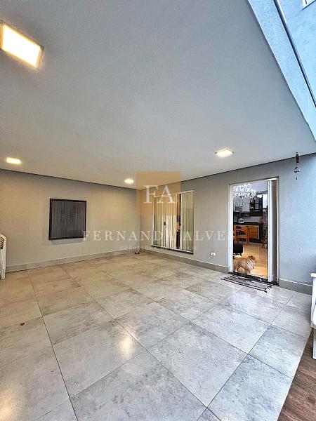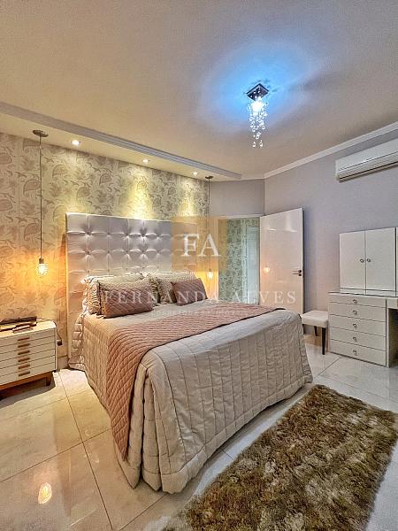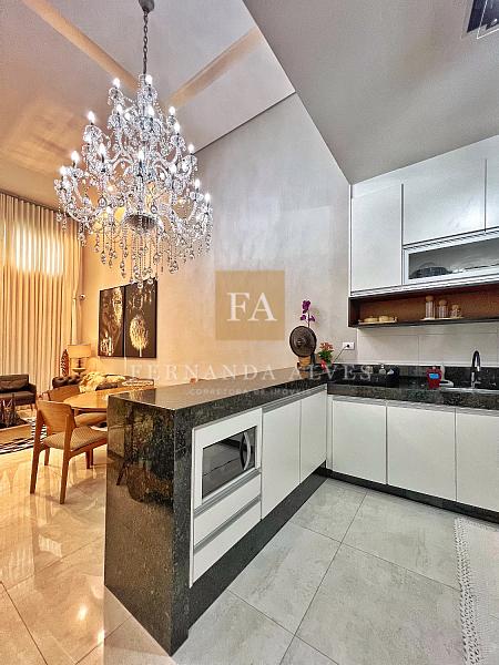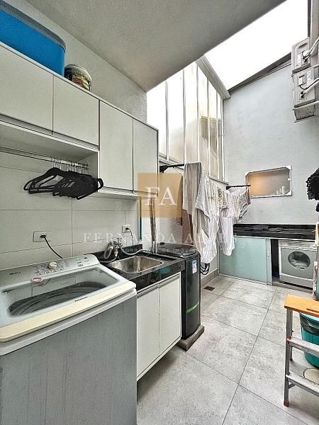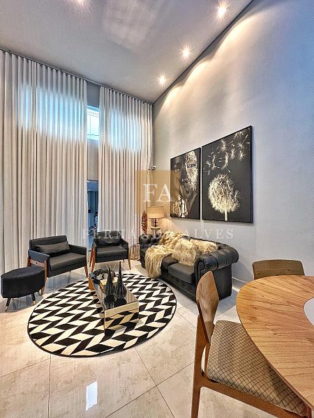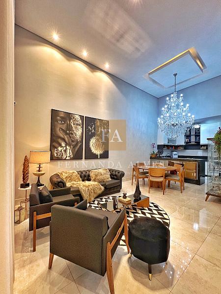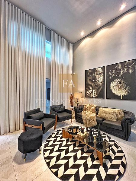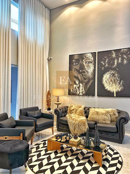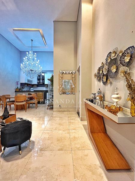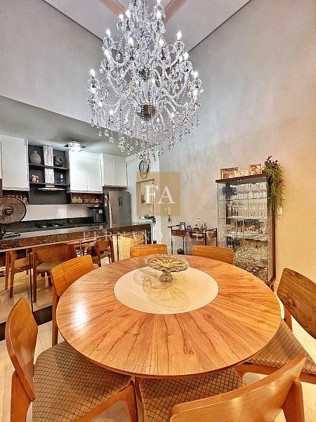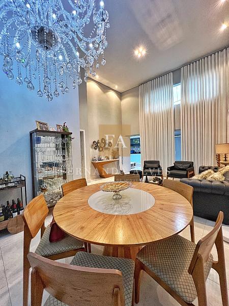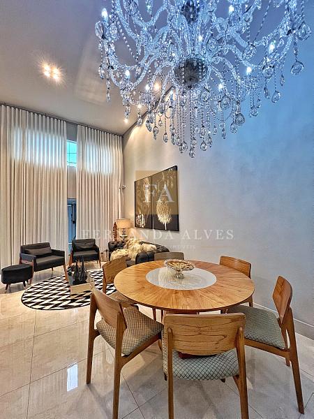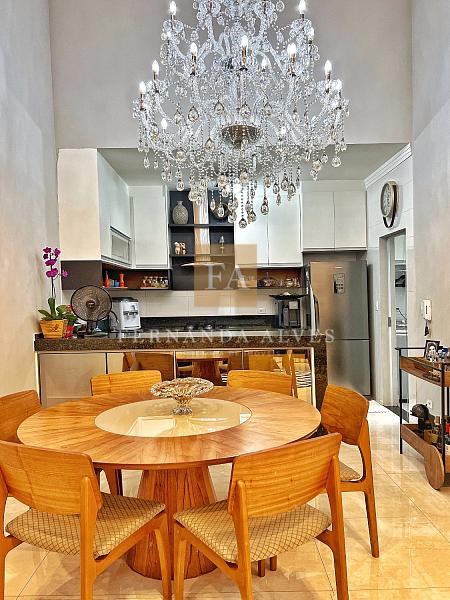 Ao entrar, pé direito alto e a integração entre os ambientes de sala de TV, jantar e cozinha. Ao lado da cozinha, amplo espaço de lavanderia com toldo retratil automatizado.