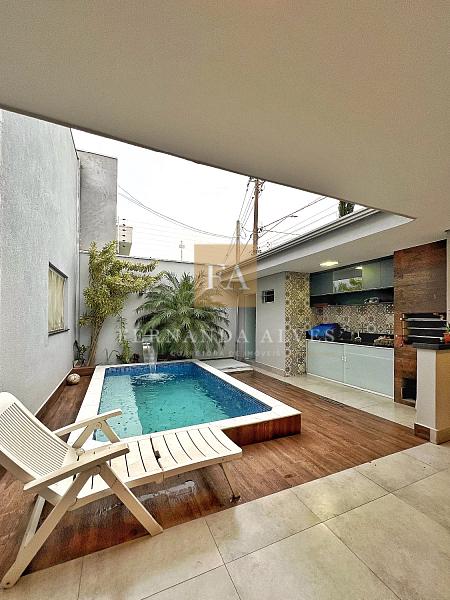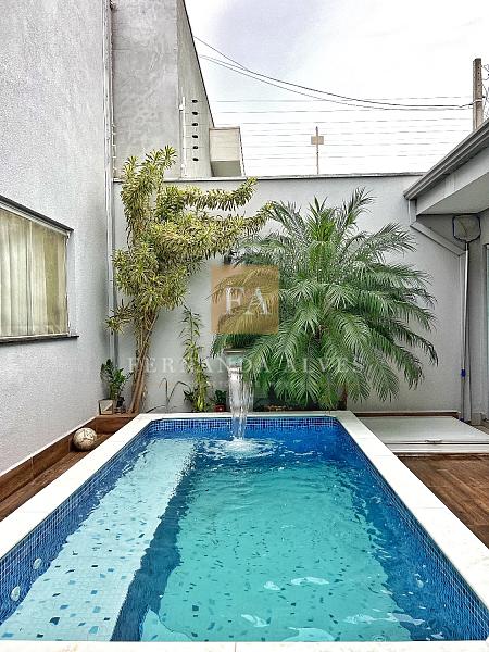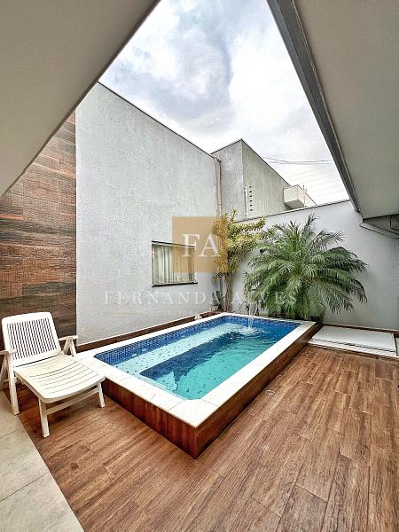 Imóvel com fachada moderna em excelente localização no bairro. Ao entrar, garagem para 2 carros cobertos e aréa de lazer ao lado. Com churrasqueira á carvão, pia e lavabo. E na frente linda piscina aquecida.