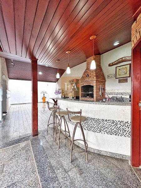 Ao lado um delicioso espaço gourmet, com churrasqueira a carvão, banheiro social, jardim, deliciosa varanda e acabamento em forro de madeira, proporcionando um ambiente mais rústico para o imóvel.
