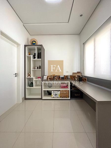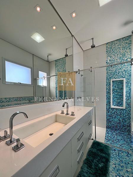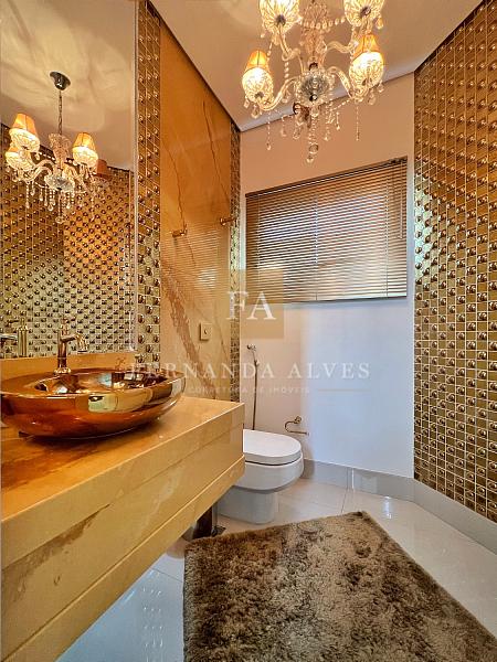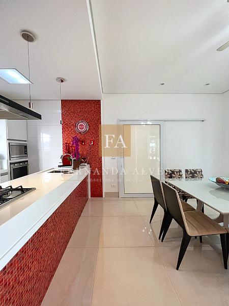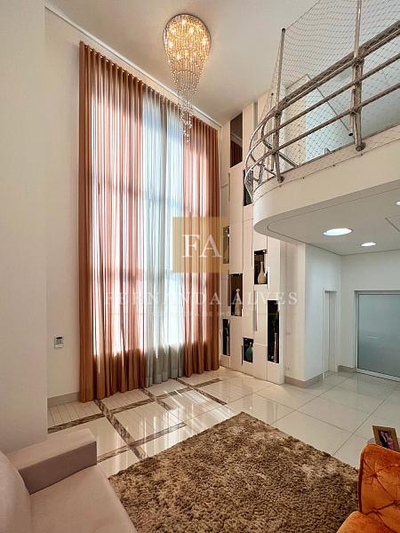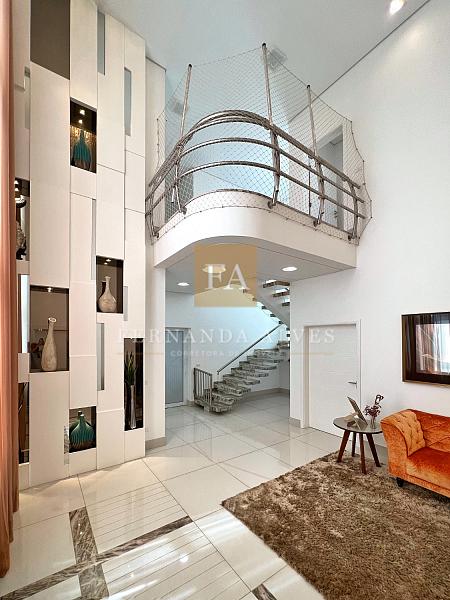 A Casa possui dois pavimentos, será vendida de Porteira Fechada, toda mobiliada e pronta para morar. Ao entrar, o seja recepcionado pela sala de visitas com pé direito duplo e vista para o mezanino, logo ao lado há uma ampla sala de TV isolada. A cozinha oferece um ótimo espaço e fica integrada á sala de jantar e espaço gourmet. A cozinha está completa em eletrodomésticos, possui lavanderia ao lado.