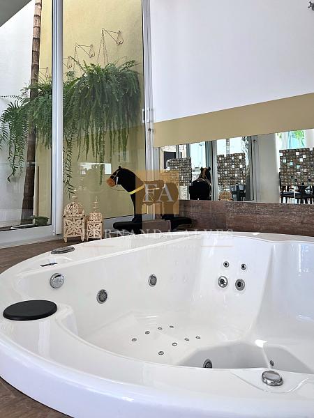 O espaço gourmet é um show a parte nesta casa, ela ficou ampla, toda aberta e voltada para a piscina, possui espaço para mesas com vários lugares, uma extensa bancada com assentos próximo á churrasqueira, completa em armários, climatizada e possui uma jacuzzi ao lado do baheiro. A piscina também é ampla e há muito espaço livre em volta da piscina, com jardim e vagas de garagens separadas.