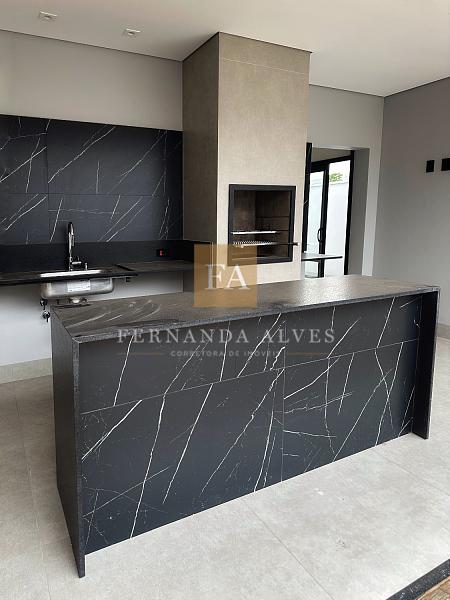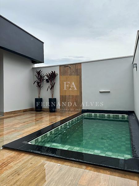 Excelente casa recém-construída com com excelente acabamento. A casa conta com 465 m² de terreno e 238 m² de área construída em ótima localização e possui 3 suítes, sendo 1 master com closet, banheiro com pia dupla, ampla sala com pé direito alto living integrado, completa em esquadrias, iluminação em led, com cozinha americana revestida em mármore calacata, espaço home Office, ampla área gourmet, com banheiro churrasqueira, piscina revestida garagem para 2 carros coberta.
