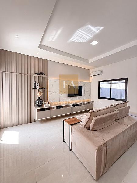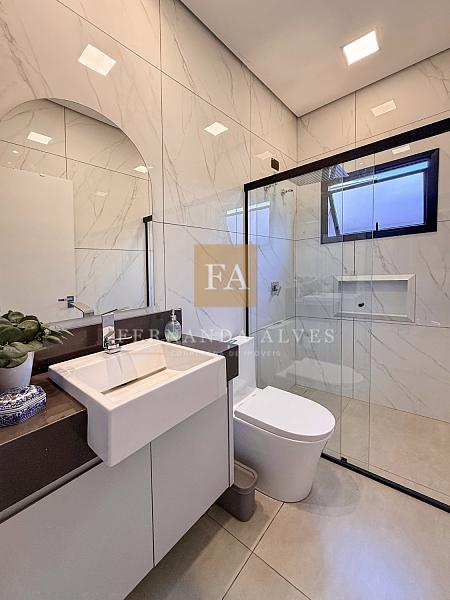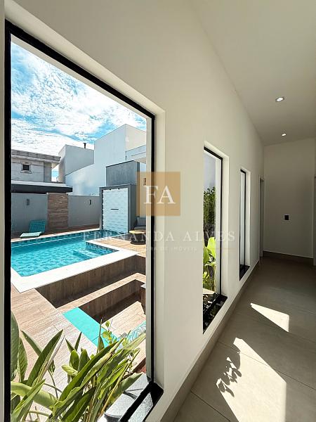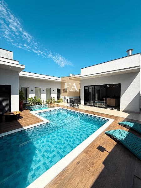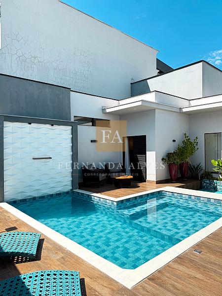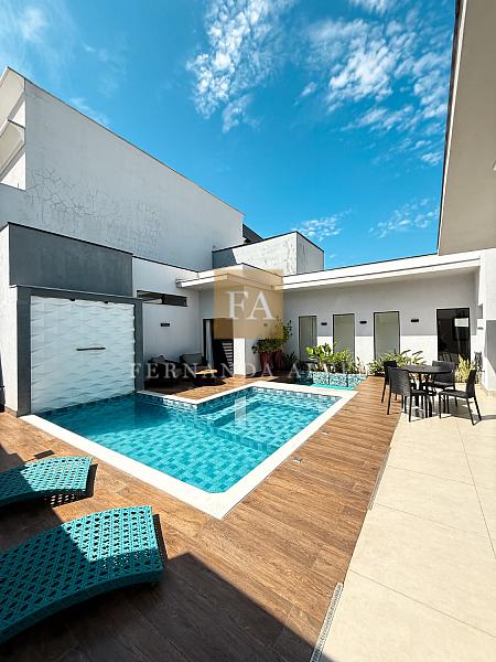 Casa térrea recém-construída à venda no Condomínio Pau Brasil, um dos mais desejados de Americana. Com 450m² de terreno e 240m² de área construída, esta residência moderna será vendida porteira fechada, com mobília e eletrodomésticos de alto padrão. Destaque para a ampla fachada contemporânea, sala de estar com pé-direito alto e lareira, sala de TV, cozinha espaçosa com ilha central, churrasqueira, marcenaria completa e eletrodomésticos inclusos. A porta de entrada conta com fechadura digital, os interruptores são inteligentes e todos os ambientes são climatizados. A casa possui sistema de energia fotovoltaica, aquecimento de água e uma bela área externa com piscina iluminada em LED com cascata e um aconchegante fogo de chão, ideal para os dias frios e bons momentos ao redor de um vinho. Na área íntima, são três suítes elegantes, sendo a principal com um generoso closet. Possui também um home Office. O condomínio oferece infraestrutura completa de lazer e segurança, com piscina, quadras de tênis e futebol, academia equipada, salão de festas, playground e monitoramento 24 horas. Uma residência pensada para proporcionar conforto, sofisticação e qualidade de vida em um dos melhores endereços da cidade.