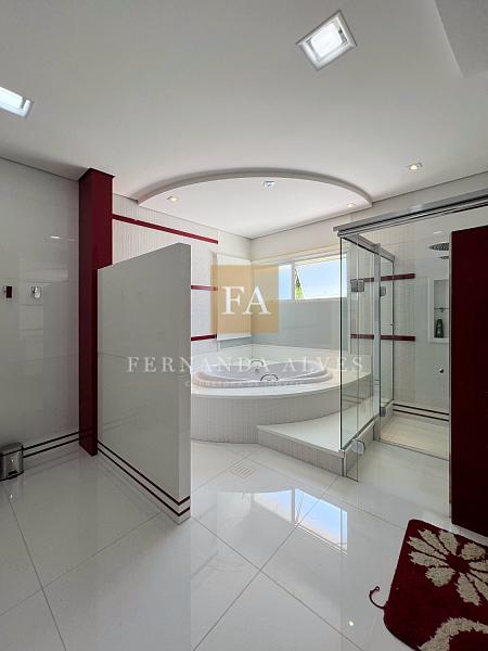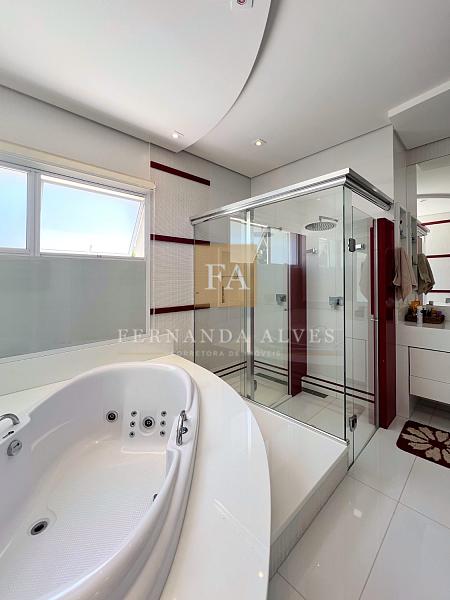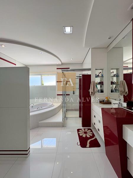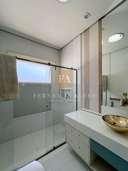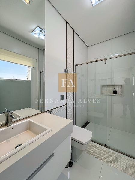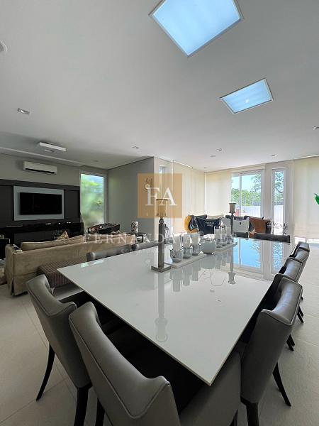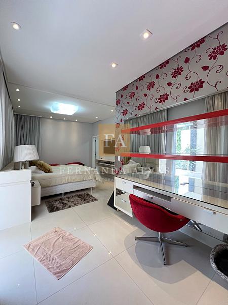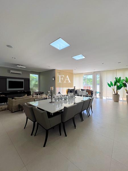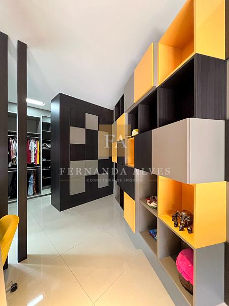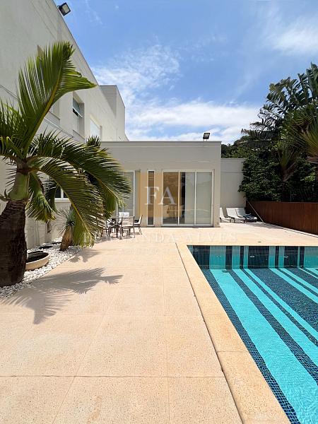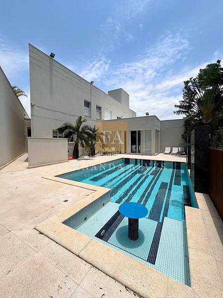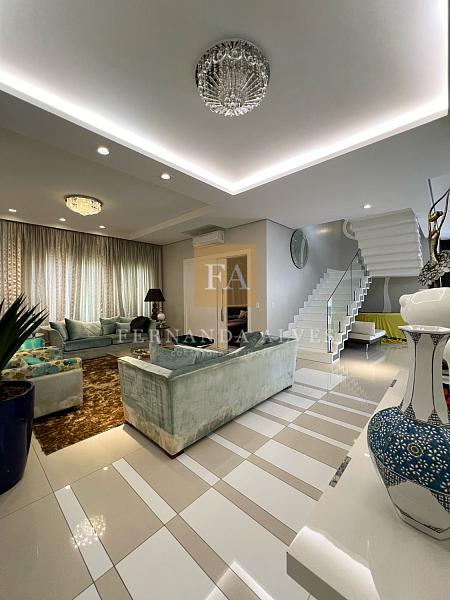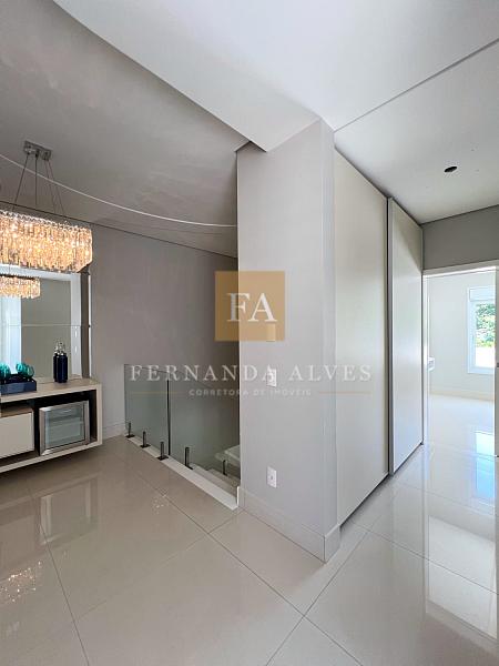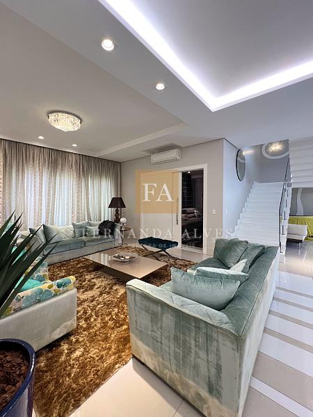 Em um lote de 802 e área construída de 589 metros quadrados, esta casa oferece 4 suítes que ficam no pavimento superior e todo o espaço social da casa no pavimento inferior.