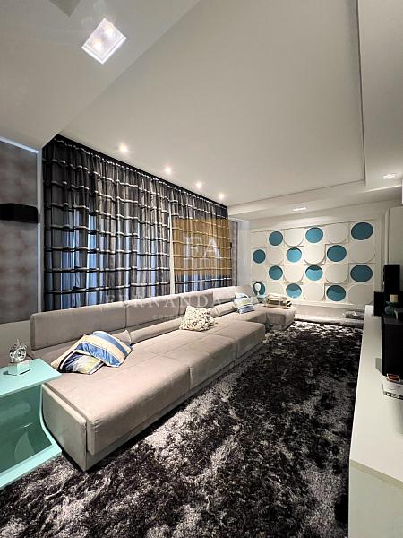Logo ao entrar temos um living com sofás, poltronas e lavabo para recepcionar seus convidados, ao lado esquerdo temos um home cinema (sala de TV isolada), onde você vai assistir os melhores filmes e séries com a família.