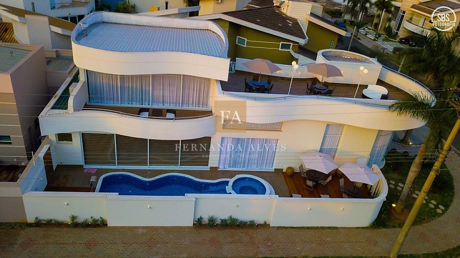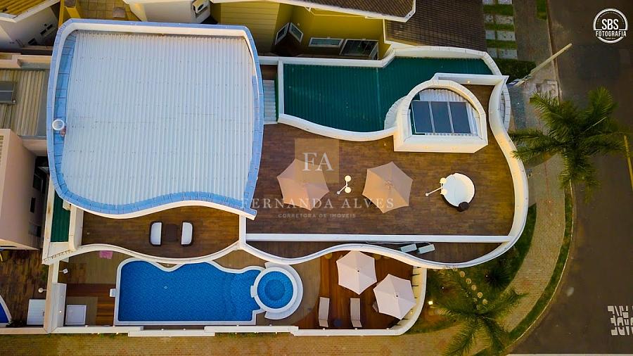 O espaço da piscina dá um toque especial nesta luxuosa residência. São 400 metros de construção e um terreno de 485 metros quadrados.