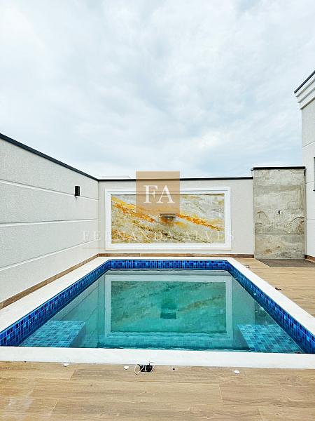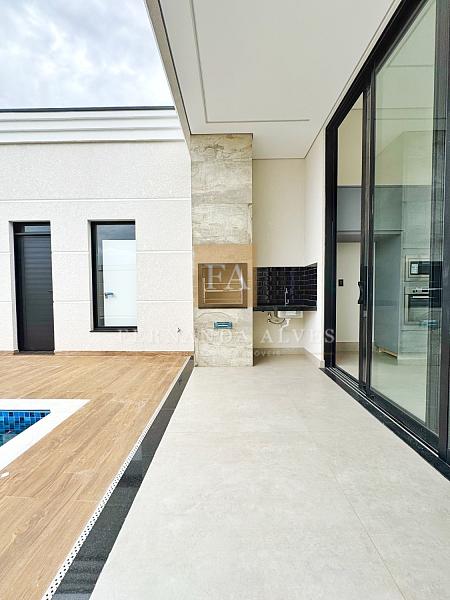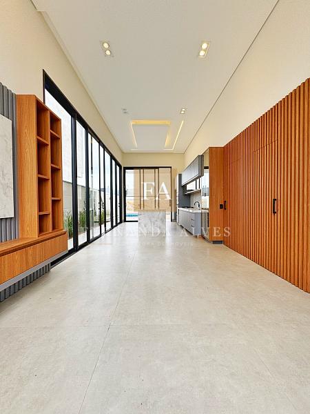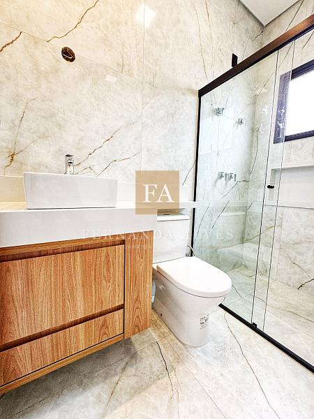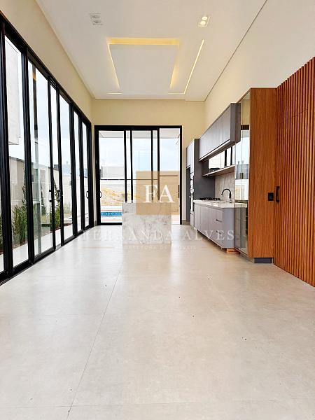 03 suítes 1 sendo master com closet, persianas automatizadas e ponto para ar condicionado em todos os ambientes, um espaço para escritório, sala para dois ambientes integrados, completa em marcenaria, lavabo, cozinha com eletrodomésticos, lavanderia, área gourmet churrasqueira piscina aquecida e aquecimento solar.