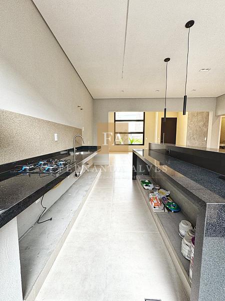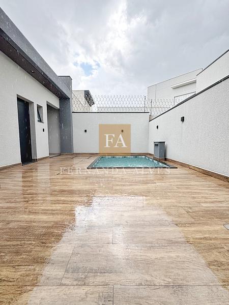 São 03 quartos um sendo suíte e dois com uma Demi-suíte, living e sala de jantar integrada, cozinha gourmet com churrasqueira, banheiro social, projeto luminotécnico instalado, Piscina preparada para aquecimento com hidro e cascata.
