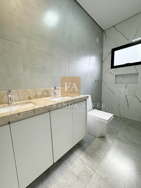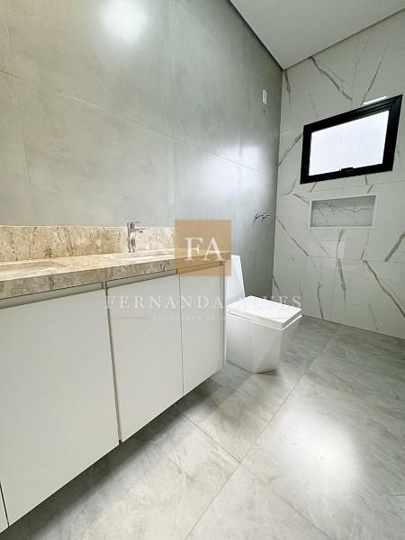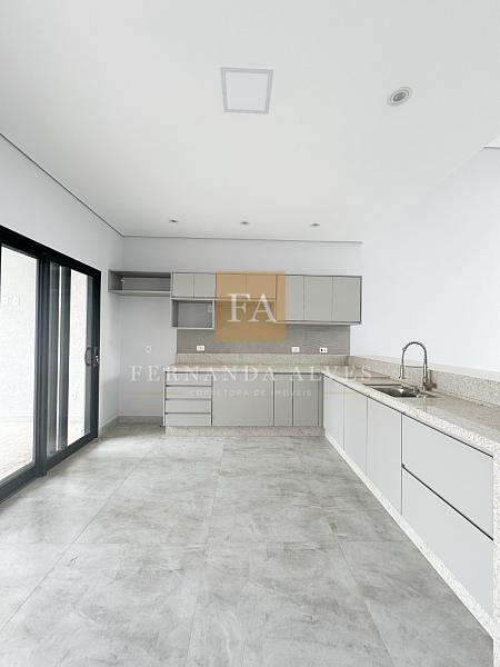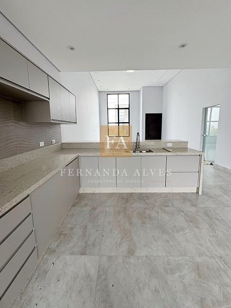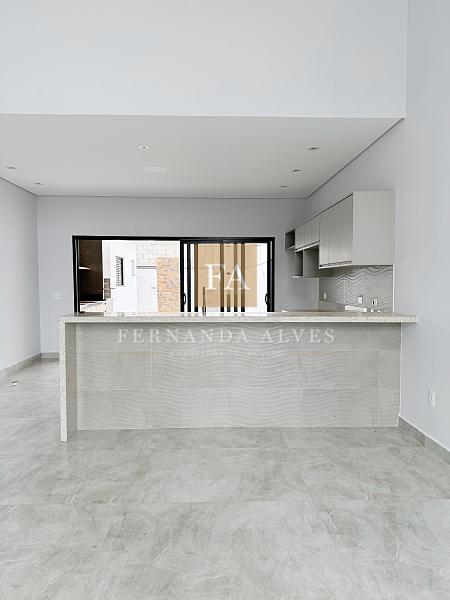 3 quartos, sendo 1 suíte com closet, uma cozinha com ilha integrada à sala de jantar, sala de TV, lavabo, área gourmet com churrasqueira.