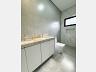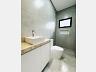 Pisos e revestimentos em porcelanato, esquadrias em alumínio.