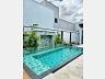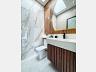 Piscina com hidro, cascata e iluminação em led e lavabo alternativo.