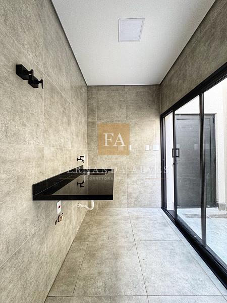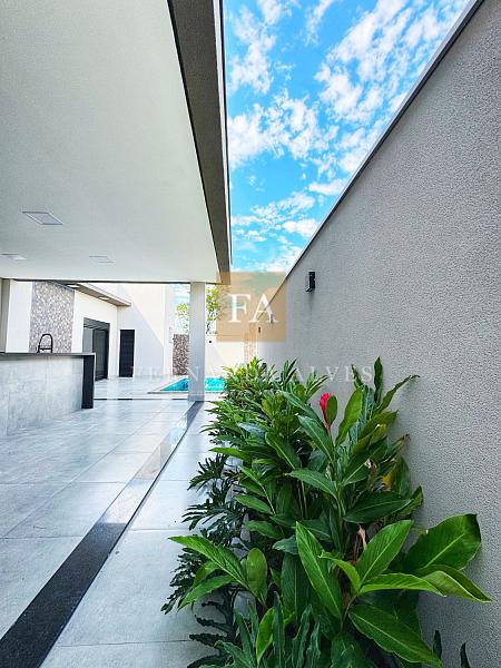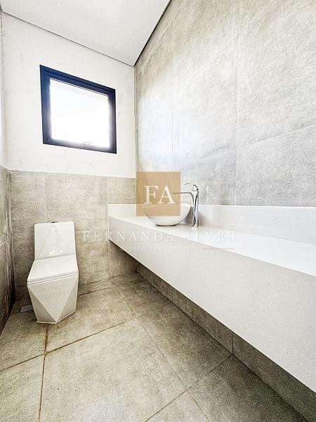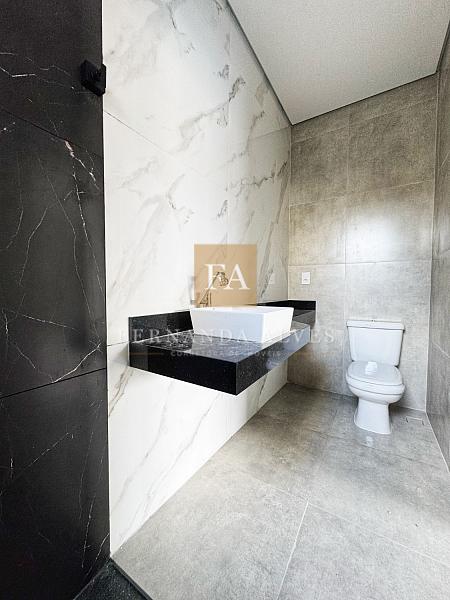 com 340 metros de terreno 200 metros de construção, com três quartos sendo uma suíte máster com closet, banheiros com fino acabamento, ampla sala com pé direito alto integrada com a cozinha.