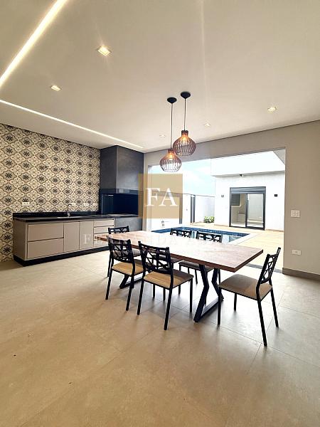 Na área externa, o espaço gourmet é perfeito para receber amigos e família, já equipado com mesa, proporcionando momentos especiais de lazer ao lado da piscina.