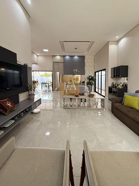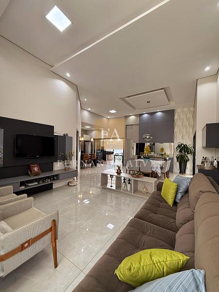 Esta belíssima casa conta com uma fachada moderna, pé direito alto e aproveitamento de iluminação natural, que cria um ambiente aconchegante e sofisticado.