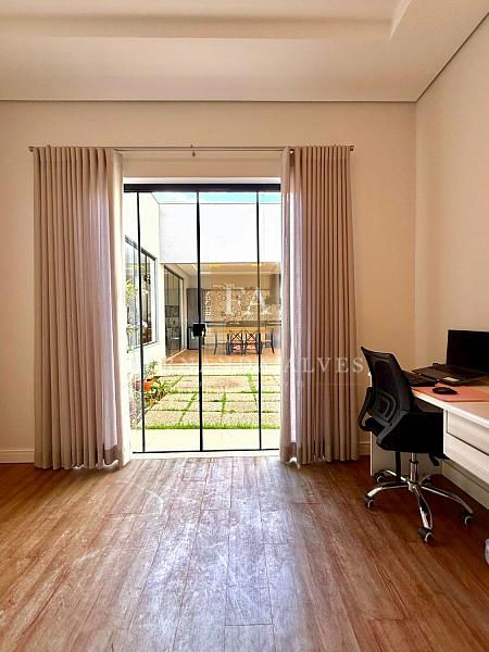 São 3 suítes amplas e um home office espaçoso. O espaço gourmet tem um ótimo espaço com churrasqueira ,um amplo espaço livre em frente, um lindo jardim e depósito externo.