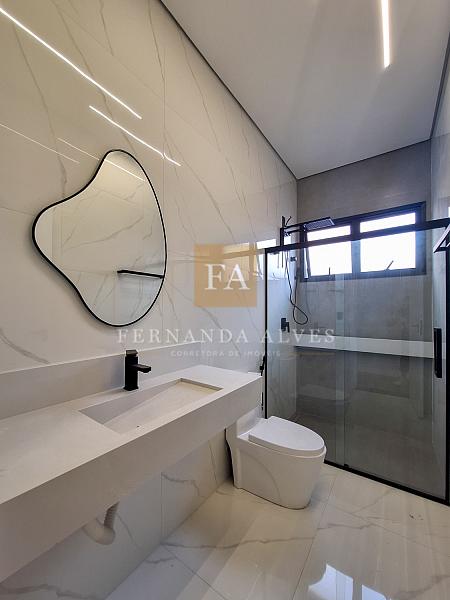 Venda de belíssima residência térrea no Condomínio Engenho Velho em Nova Odessa. Este projeto arquitetônico foi desenvolvido para proporcionar conforto, funcionalidade e sofisticação em cada detalhe. O layout interno valoriza a integração dos ambientes sociais, com sala de TV, estar, jantar e cozinha em conceito aberto, todos com pé direito alto que garante amplitude e iluminação natural aos espaços. A cozinha interna conta com uma linda bancada em pedra, cuba adicional com escorredor embutido e acabamento de alto padrão. O espaço gourmet é equipado com ilha central e churrasqueira, oferecendo praticidade e elegância para momentos de lazer. A área externa contempla uma piscina e um jardim vertical que contribui para o bem-estar e o charme do ambiente. Na área íntima, a casa dispõe de três dormitórios, sendo uma suíte master com closet, cuba dupla no banheiro e persianas automatizadas, além de um homeoffice. Localizado em um dos condomínios mais valorizados da cidade, o Engenho Velho destaca-se pela excelente localização, com fácil acesso à Avenida Rodolfo Kivitz e a diversos pontos comerciais. Uma oportunidade única para quem busca qualidade de vida em um endereço privilegiado.