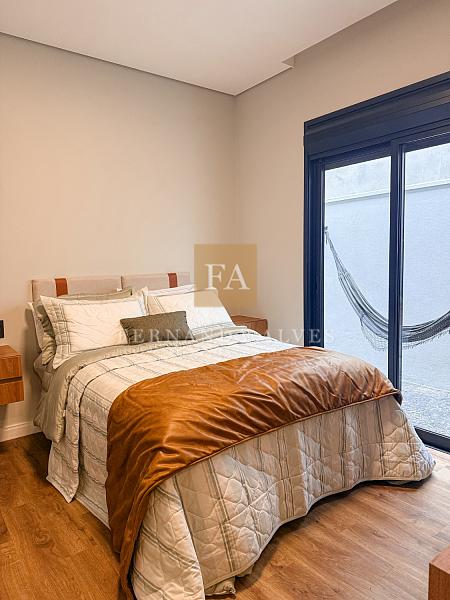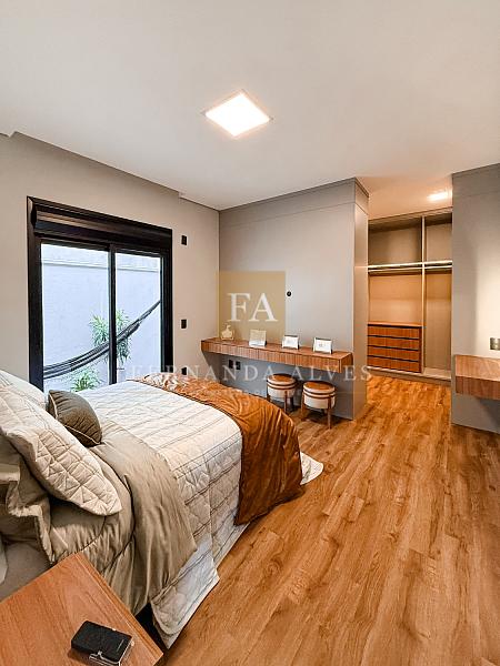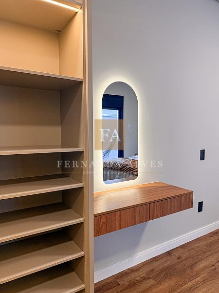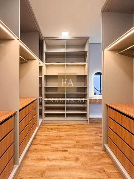 A área íntima oferece três suítes, sendo a principal com closet e banho duplo. Todas as suítes possuem persianas automatizadas e redário.