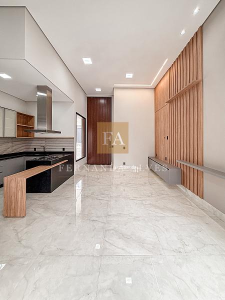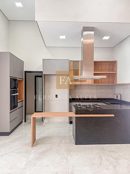 Térrea e pé direito alto, arquitetura contemporânea e um projeto interno que oferece total integração e privacidade. Living com sala de TV e jantar integrados a cozinha interna, ao lado, despensa de alimentos e lavanderia.