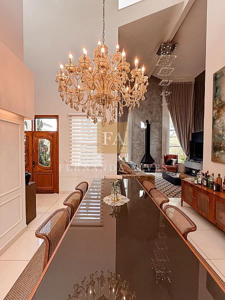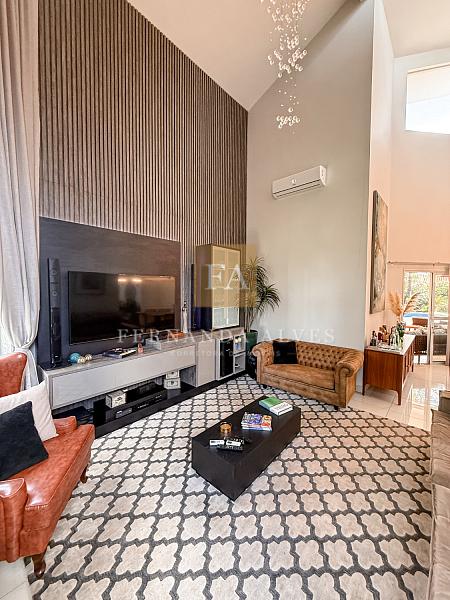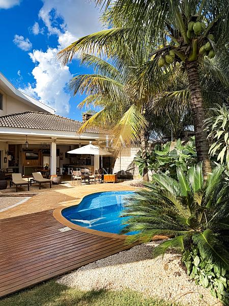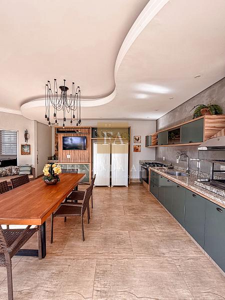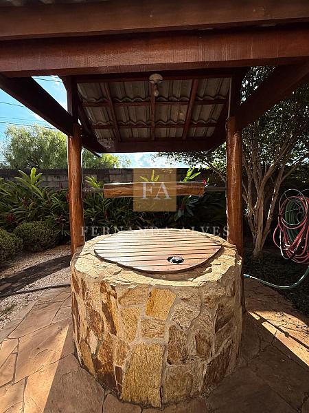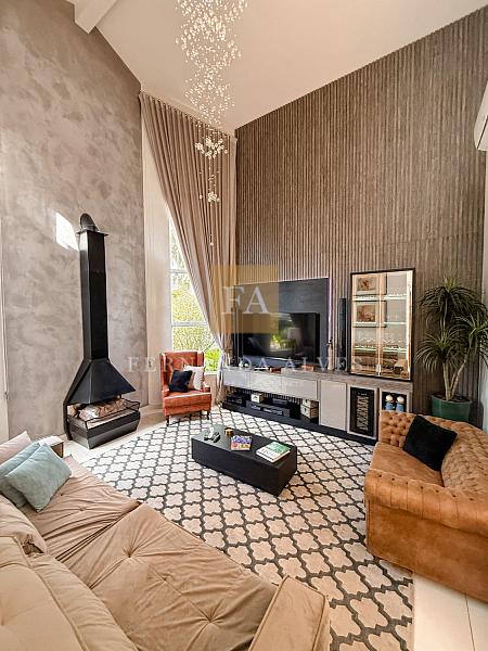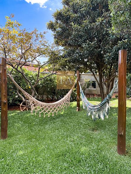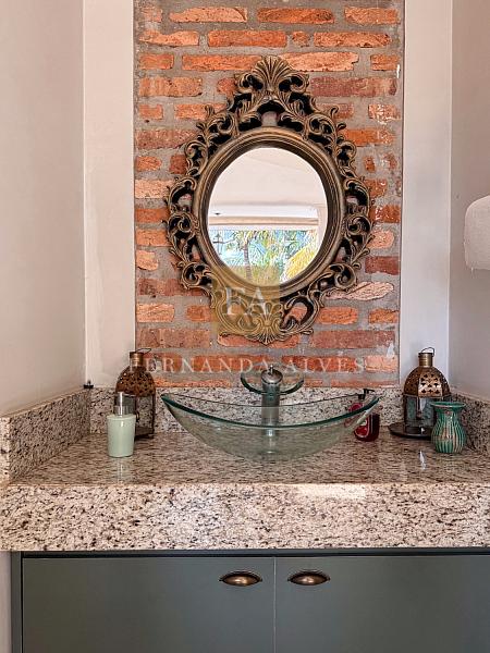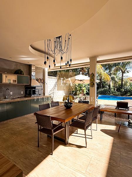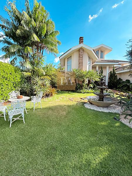 Além do verde, essa casa tem uma arquitetura com cara de Casa de Campo, ela é um verdadeiro refúgio dentro e fora! Casa térrea com 241 m² de área construída composta por: hall de entrada, sala de jantar, sala de TV, cozinha seprada e com despensa de alimentos, lavanderia com estendal, três dormitórios sendo duas supites compartilhadas e uma suíte master com closet e paisagismo no banheiro casal, amplo gourmet todo aberto para o verde e para a piscina envolta no deque.