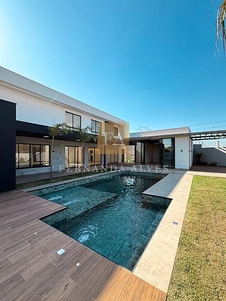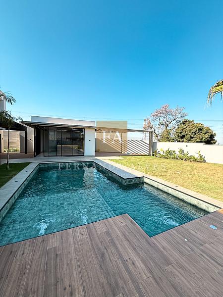 Com 1.000 m² de área total, essa exclusiva propriedade tem seu projeto voltado para toda área livre com gramado e piscina. O lazer é o cento da Casa num convite para se desconectar e aproveitar o descanso e o lazer.
