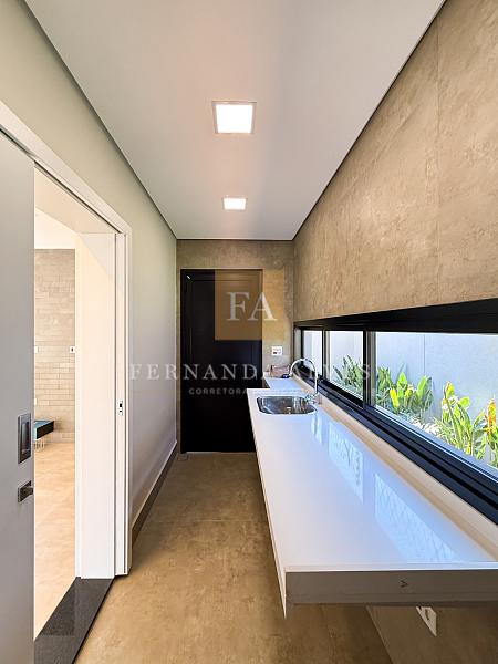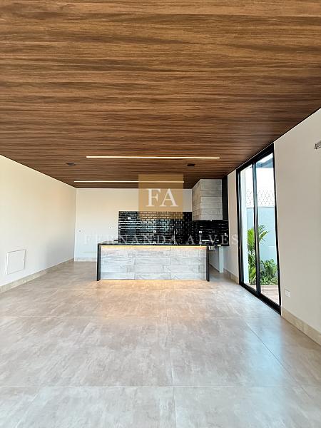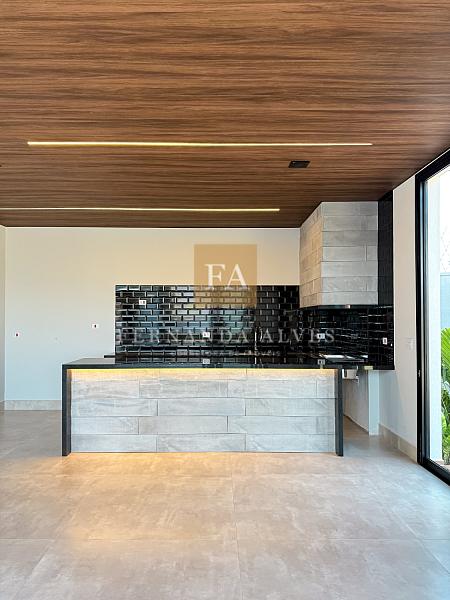 O amplo espaço gourmet também fica voltado para todo esse espaço e com certa integração com a casa. Com paredes em vidro, sistema de som ambiente, extensa bancada e churrasqueira tradicional. Ele tem vista para piscina e todo gramado que envolve o lazer dessa Casa. O gourmet e a casa possuem sistema de som ambiente que se estende inclusive para o gramado então, as festas em Casa serão ainda mais incríveis.
