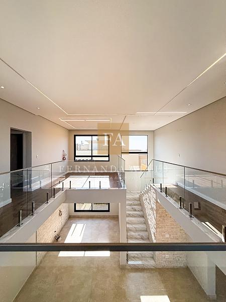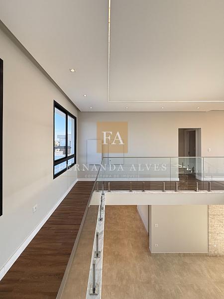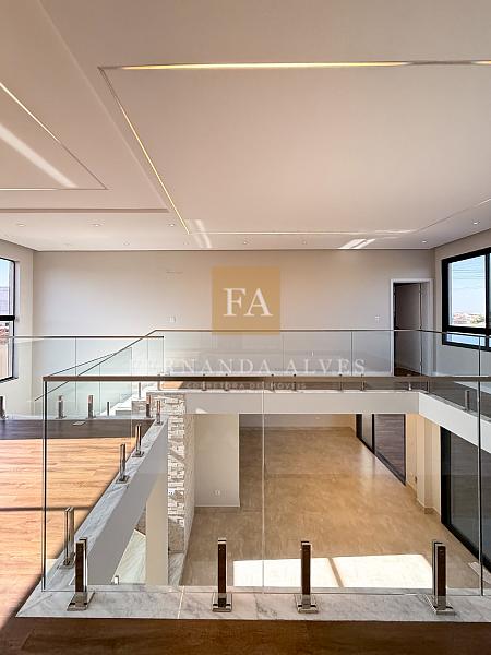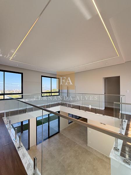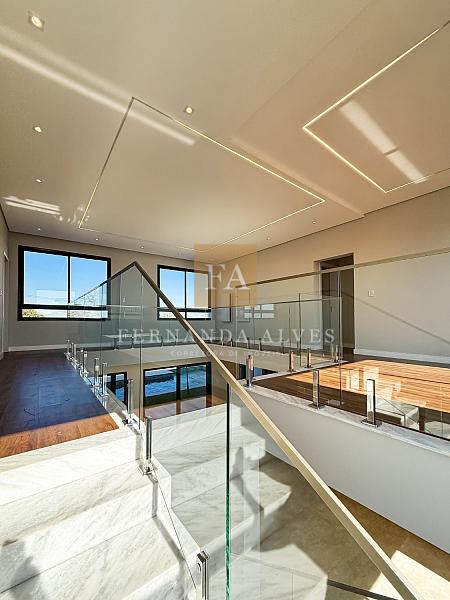 Piso superior conta com sala íntima ou espaço office e três suítes. Todas com persianas automatizadas e varanda com vista da fachada.