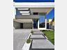 Fachada com detalhes atemporais e modernos, garagem para 4 carros.