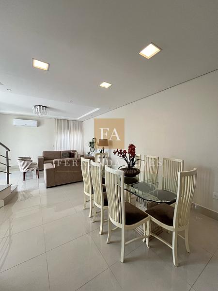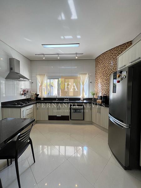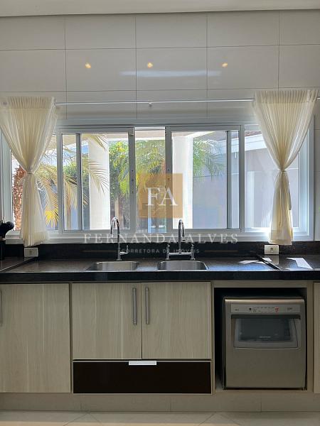 A casa oferece living dois ambientes com sala de estar e jantar, cozinha separada e com vista para o jardim e despensa de alimentos. Sala de TV isolada, também no piso térreo, área de serviço e área de luz.