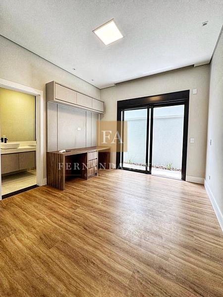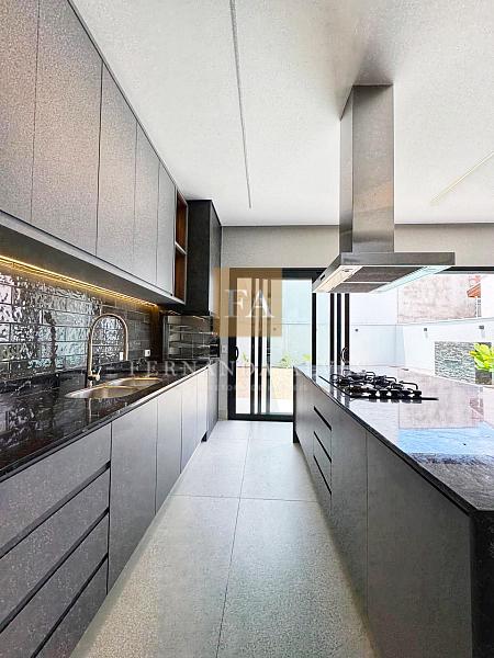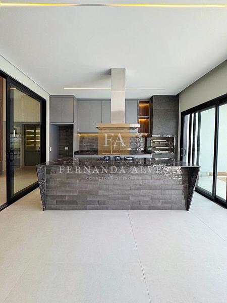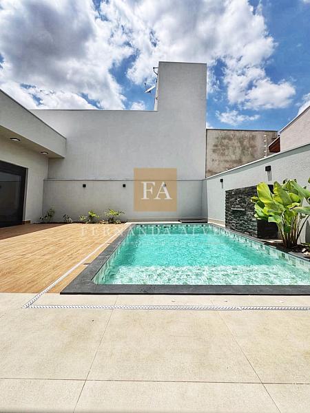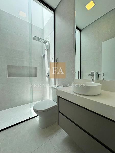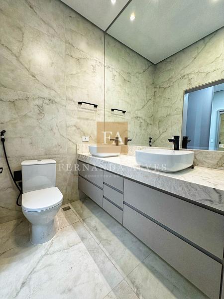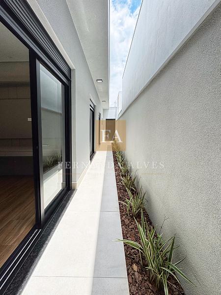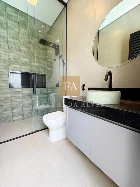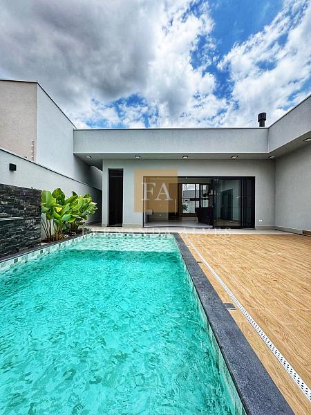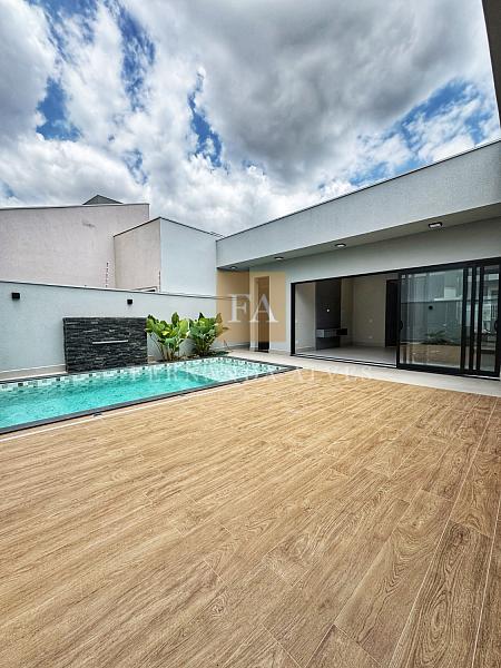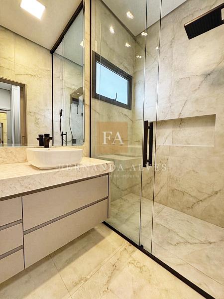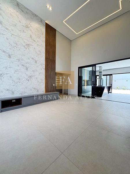 Casa térrea totalmente integrada, com 429,13 metros de terreno e 261,57 de construção, planta de 03 suítes, sendo suíte máster com closet com acesso a piscina, Sala de TV e jantar com pé direito alto, área de luz, lavabo, cozinha em conceito aberto, área gourmet com banheiro de apoio e lavanderia, uma linda piscina com cascata e vaga de garagem para 2 carros cobertas e 2 descobertas.