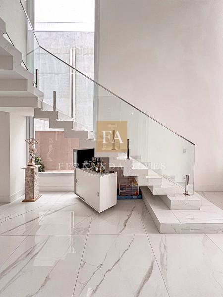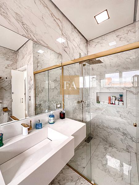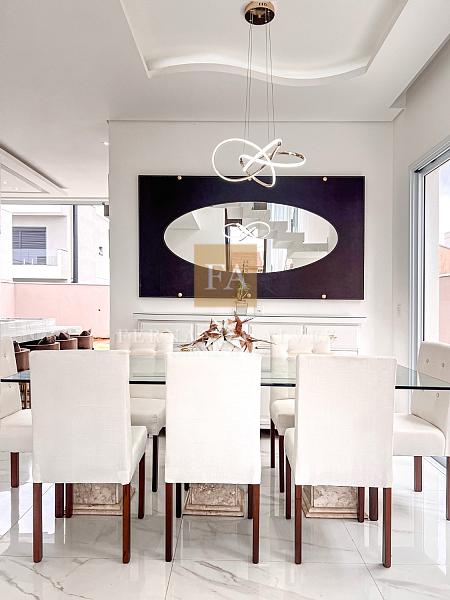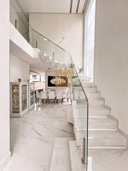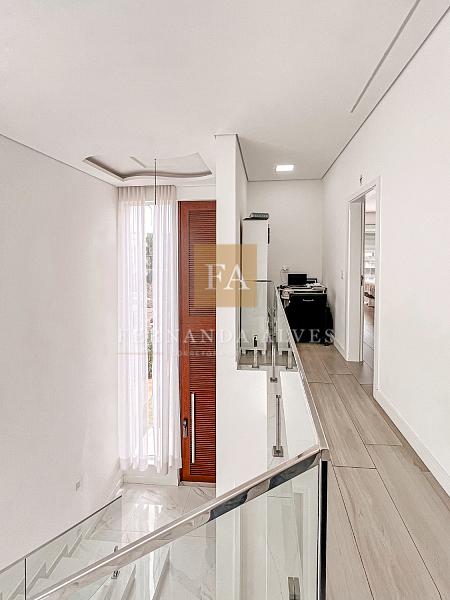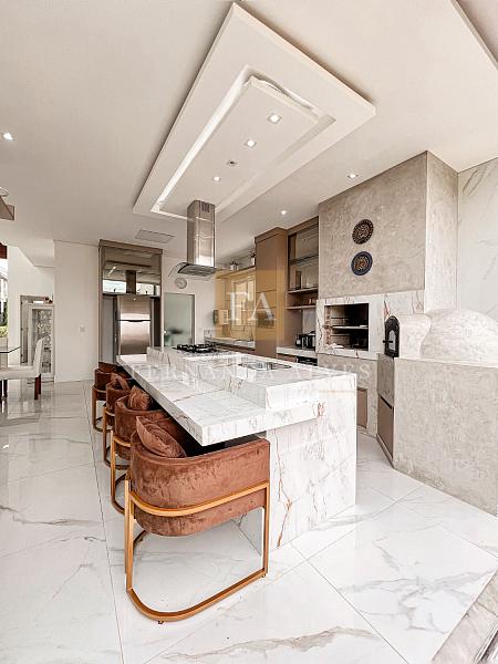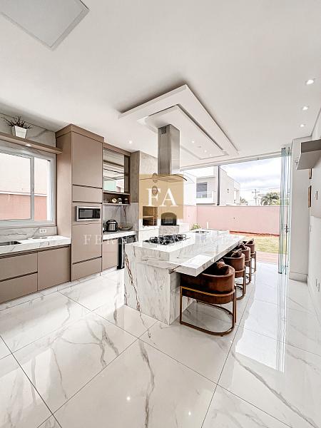 Muito bem localiziada dentro do condomínio, essa propriedade recém construída oferece 4 dormitórios sendo 2 suítes com closets e 2 suítes compartilhadas no piso superior. Ao entrar, você conta com uma sala de TV com lareira e espaço jantar, mezanino com pé direito duplo e uma cozinha integrada com ampla bancada, completa em armários, churrasqueira e forno para pizza.