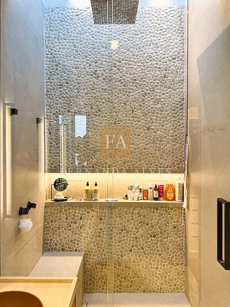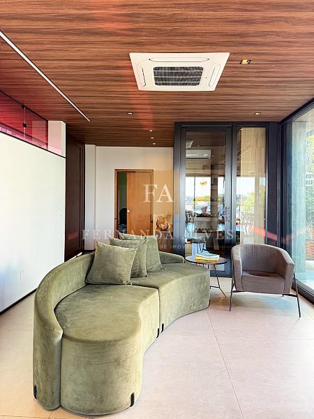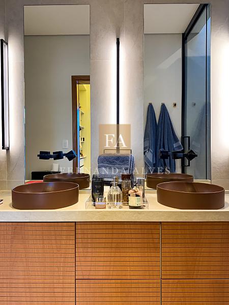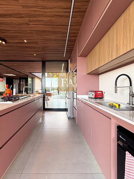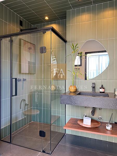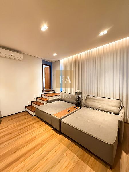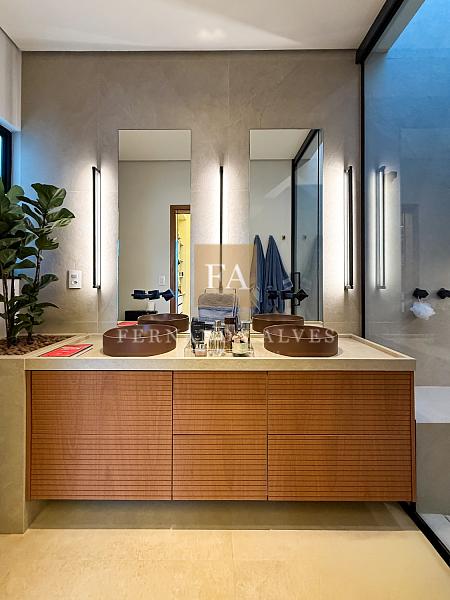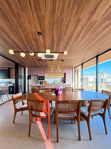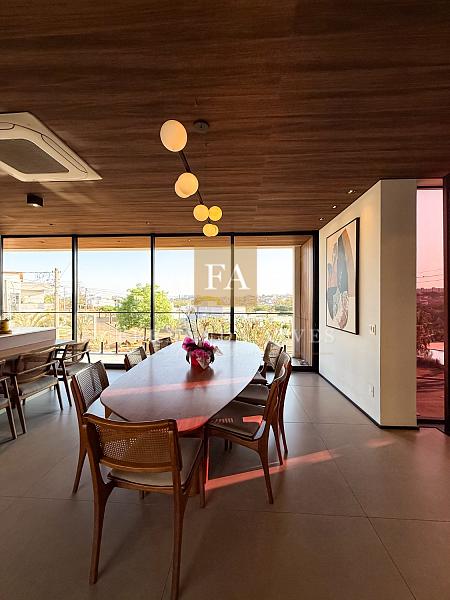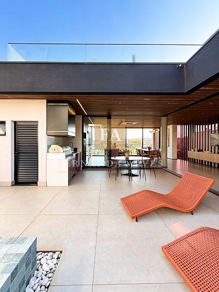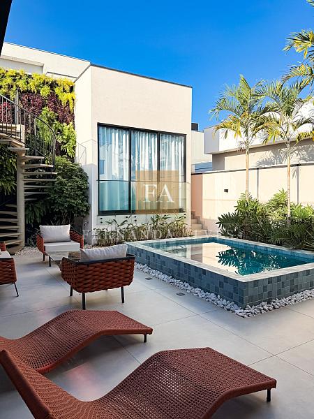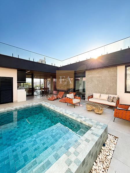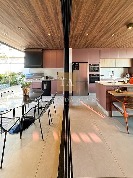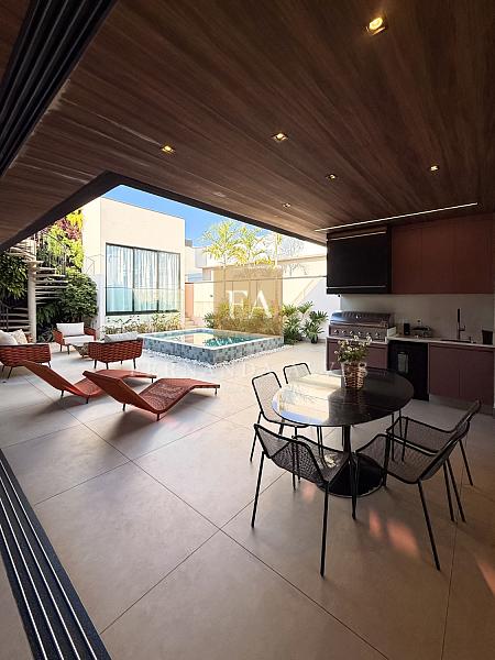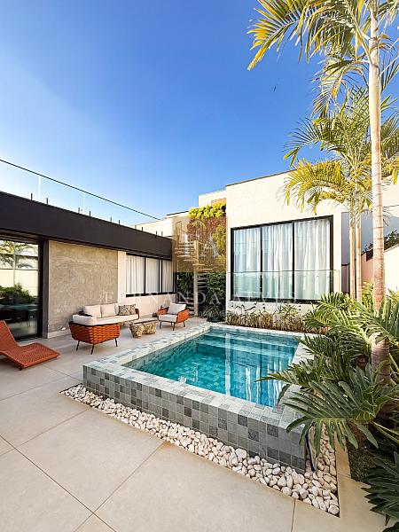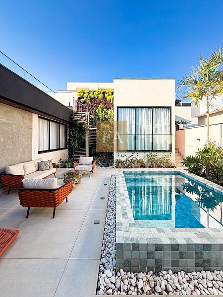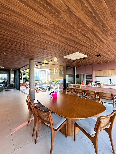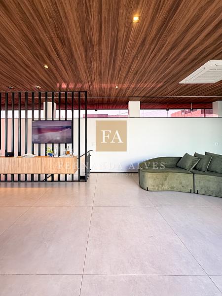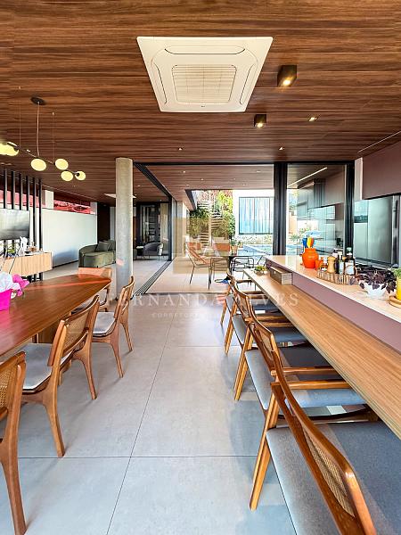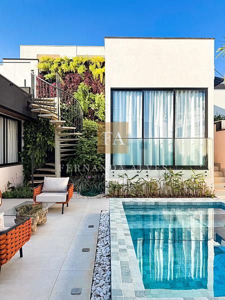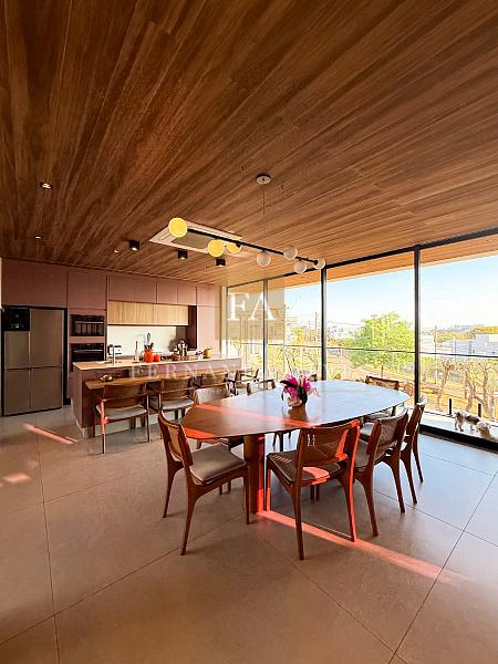 A área social impressiona com uma sala de estar aconchegante e um living amplo com ambientes integrados, que se conectam harmoniosamente à cozinha em conceito aberto, equipada com uma elegante ilha central — perfeita para receber amigos e familiares. E uma charmosa adega para os apreciadores de vinhos, além de uma convidativa piscina e um terraço com grama, proporcionando momentos únicos ao ar livre.