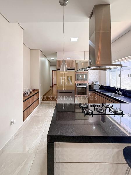 Casa térrea com living dois ambientes sendo sala de jantar e TV integrados a cozinha interna. Espaço gourmet externo com churrasqueira e banheiro. Àrea íntima conta com três dormitórios sendo uma suíte casal com closet e banheiro social.
