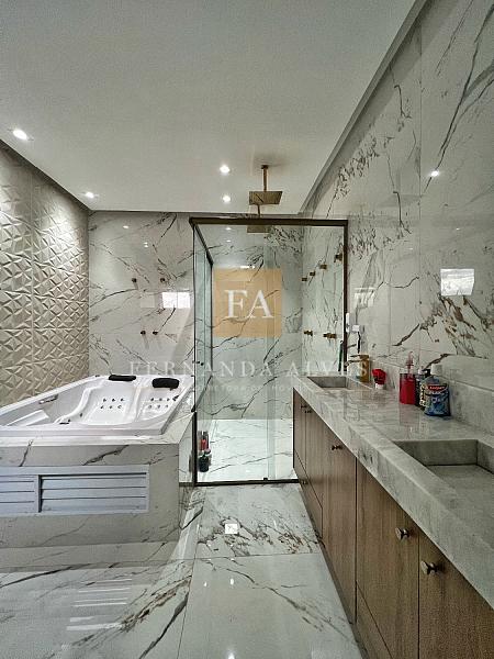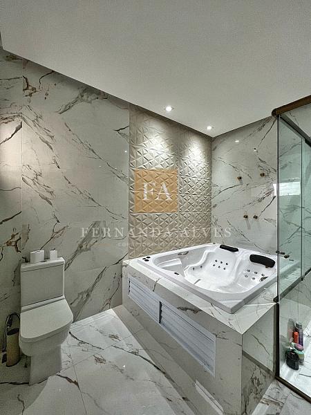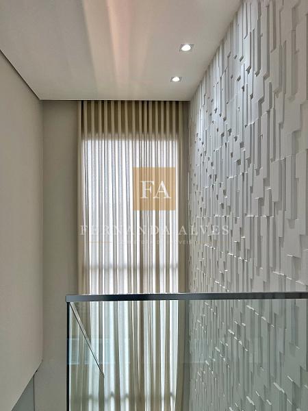 No piso superior, 3 dormitórios com ótimos espaços. A suíte master, conta com persiana automatizada que permite acesso à ampla varanda, para contemplar uma linda vista da cidade e do condomínio, além de closet e uma deliciosa banheira na sala de banho.