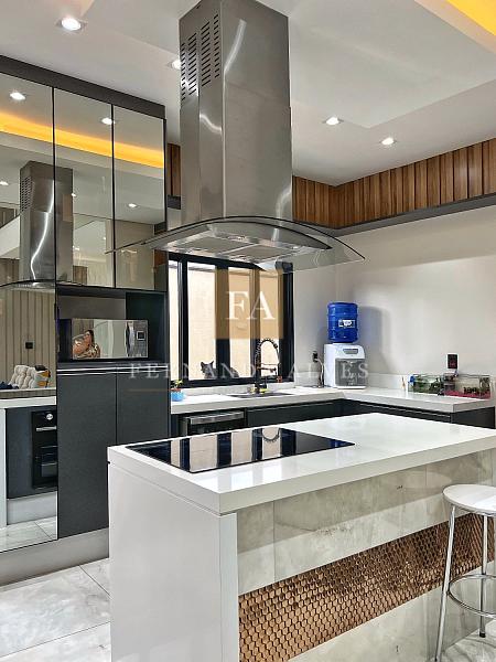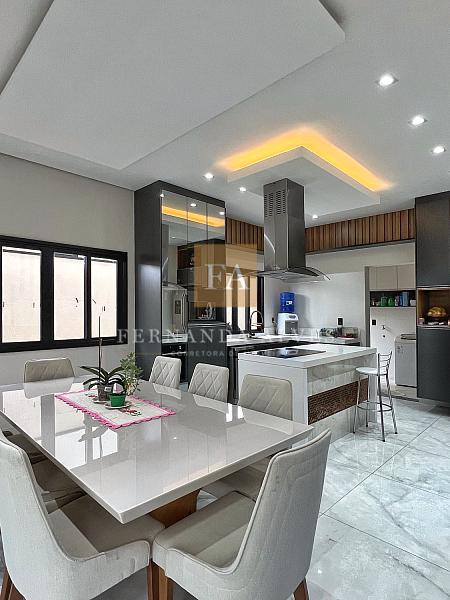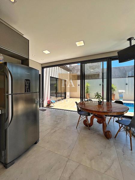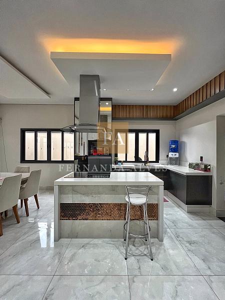 Ao entrar um amplo living, com integração dos ambientes sala de jantar e cozinha, todos com vista para aréa da piscina. Lavanderia ao lado da cozinha. O espaço gourmet, com fechamento em esquadrias, está completo para receber amigo e toda família. Banheiro completo ao lado.