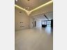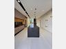 Fachada moderna, com pé direito alto e iluminação com fitas de LED.