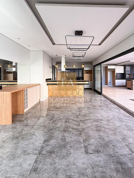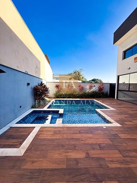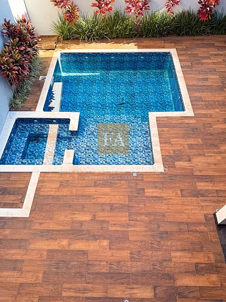 Living com sala de visitas, sala de Tv isolada, espaço jantar integrado a cozinha interna e com vista total para área externa da casa. Muito espaço de quintal, espaço gourmet com área coberta, piscina com hidro e banheiro completo.