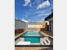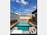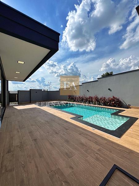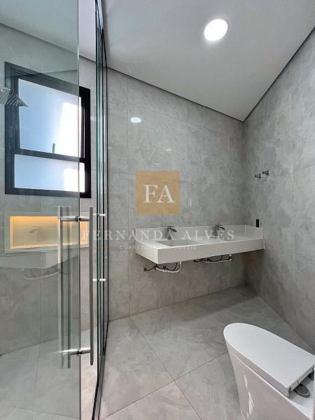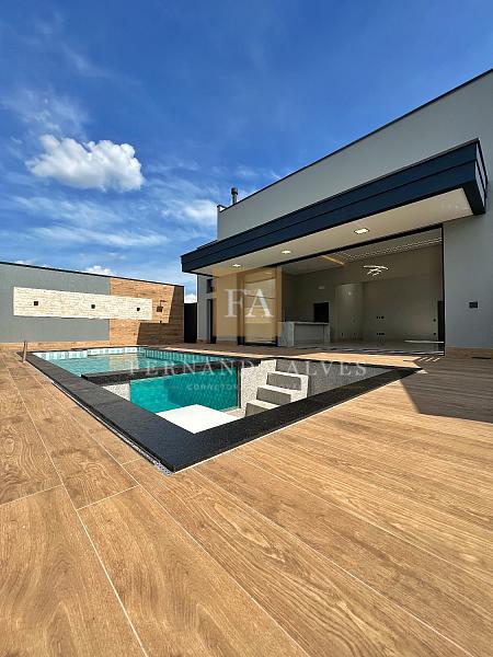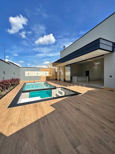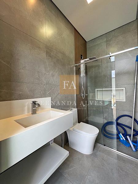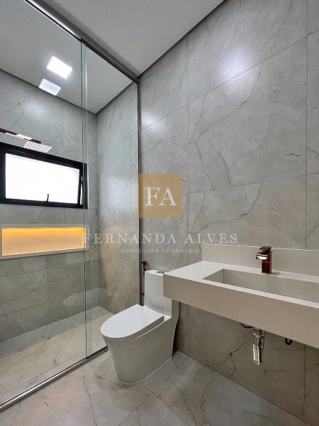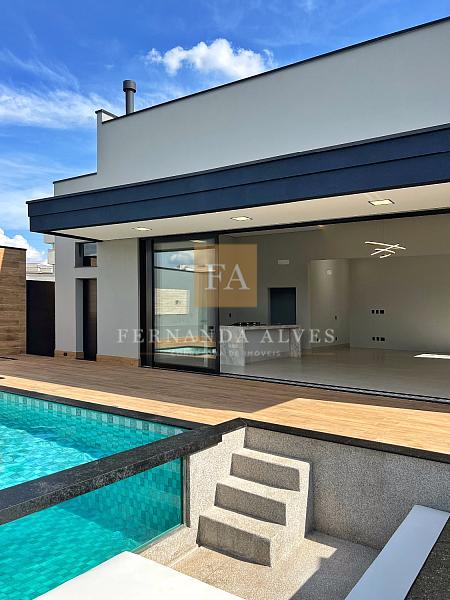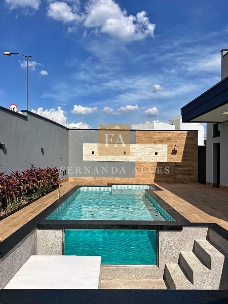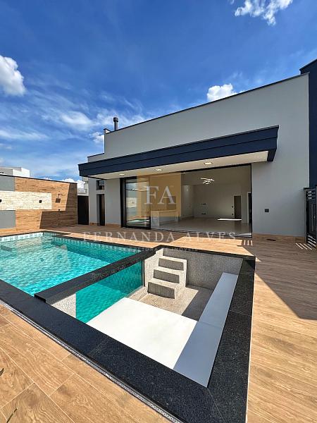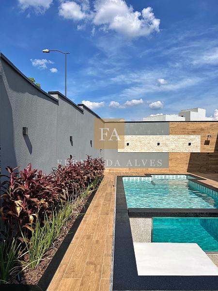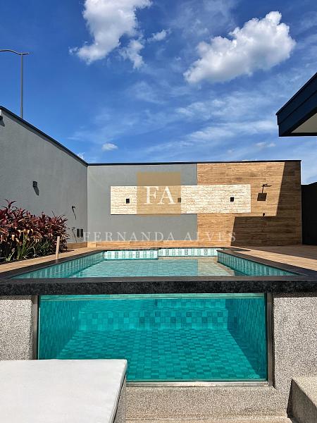 Por fim a área externa da casa, que possui banheiro completo e ótimo espaço de quintal. A piscina, um espetáculo a parte com lindo detalhe em vidro que permite visão da água e de quem estiver dentro, possibilitando a interação com que estiver sentado no espaço ao lado.