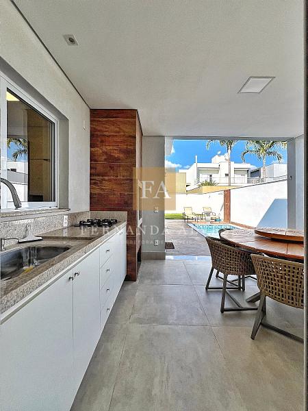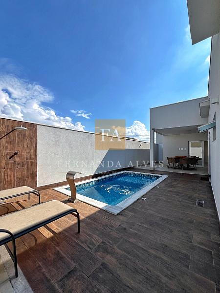 Essa linda casa, oferece conforto e lazer aos seus moradores. Ela possui 3 suítes, espaço de home office, lavabo, living dois ambientes, aréa gourmet externa, piscina aquecida e 4 vagas de garagem.
