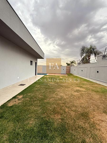 Quintal com ampla área gramada e piscina, ideal para os dias de lazer.