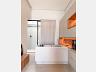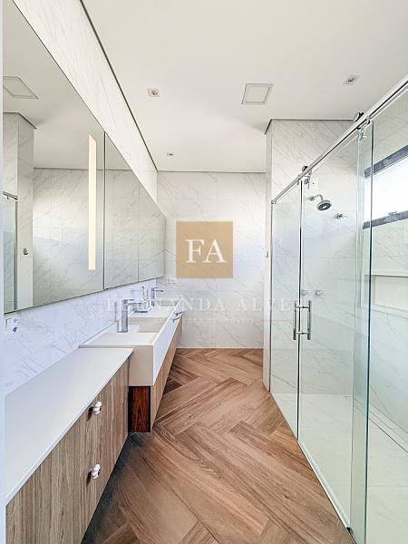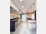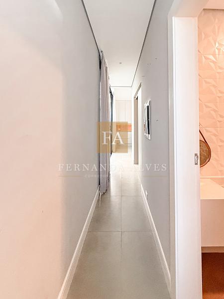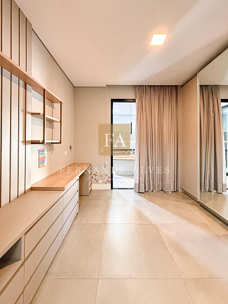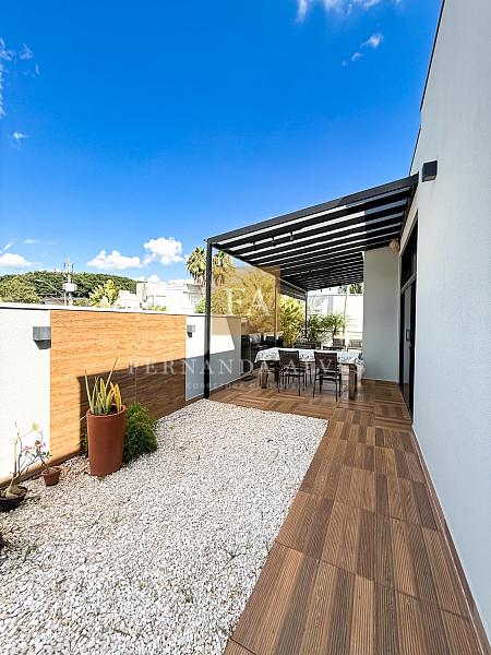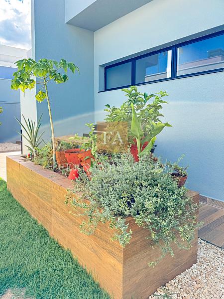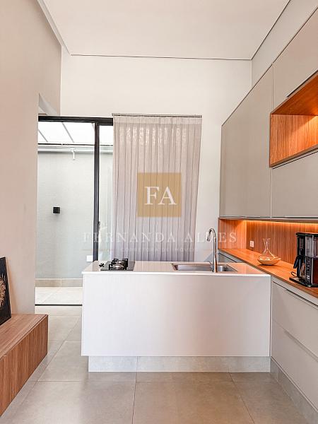 A área íntima oferece dois dormitórios sendo uma suíte com closet e banheiro social. Casa completa em marcenaria, tooda climatizada e com energia fotovoltaica. No fundo da casa há jardim com horta e espaço livre.