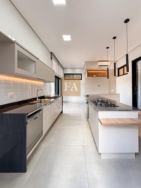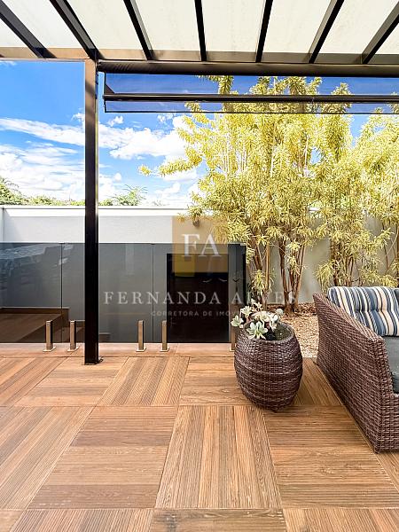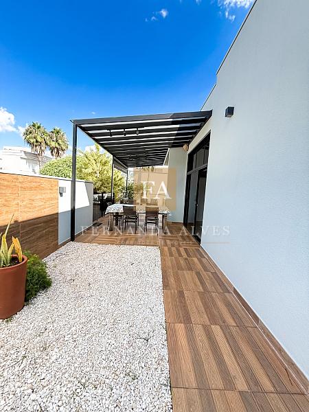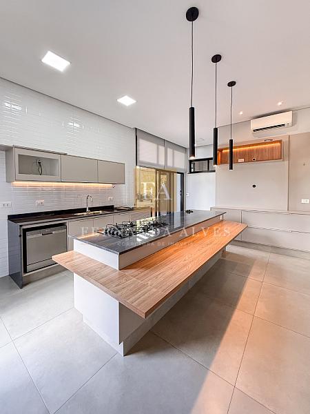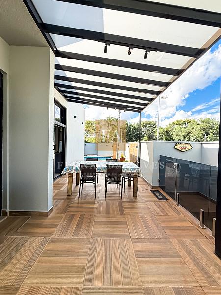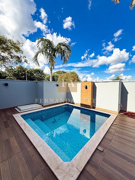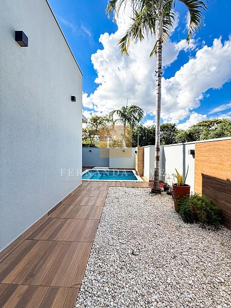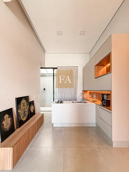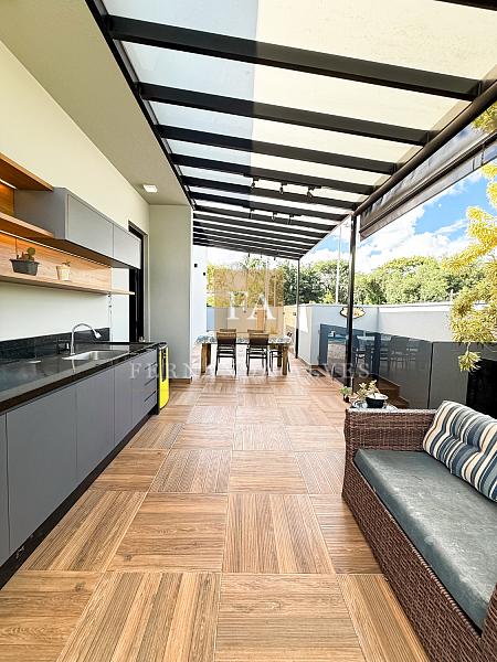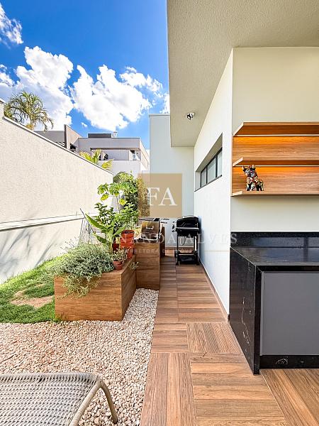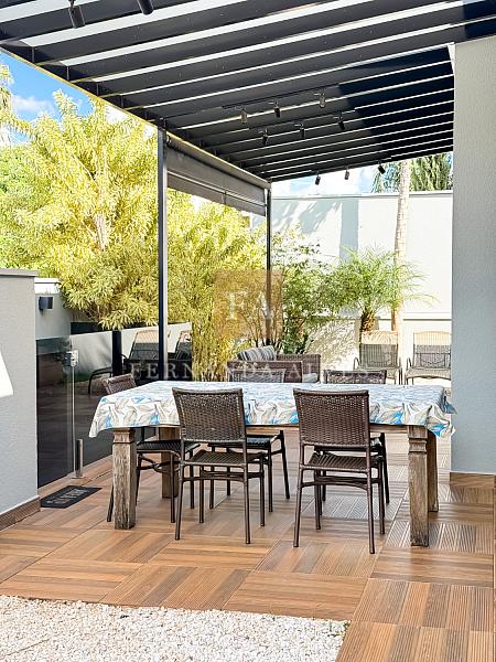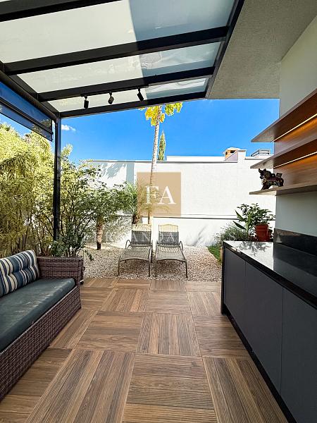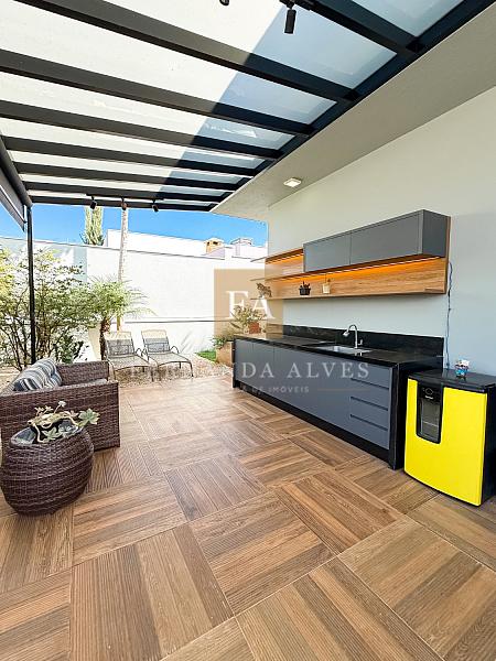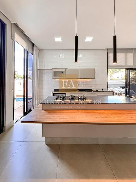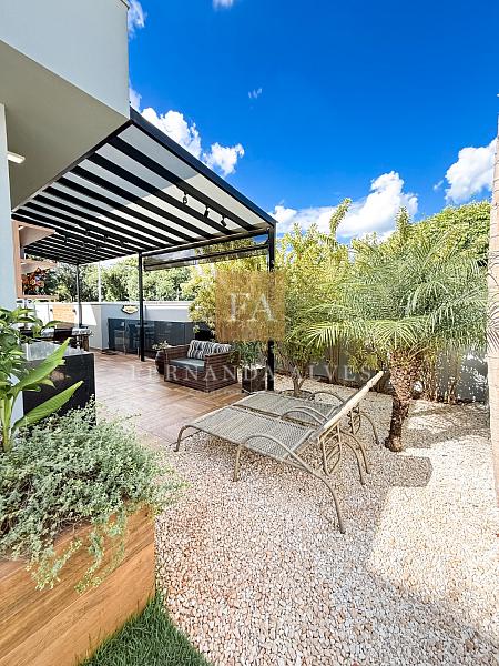 A Casa possui living com sala de Tv e jantar integrados a cozinha interna, área gourmet externa, toda aberta voltada para a piscina e jardim da casa. O gourmet possui entrada independente.