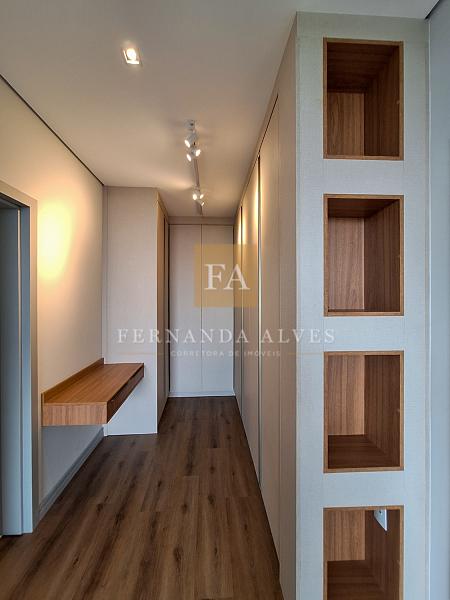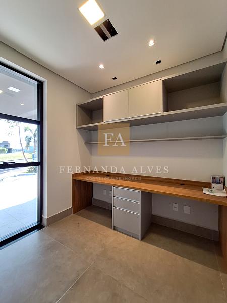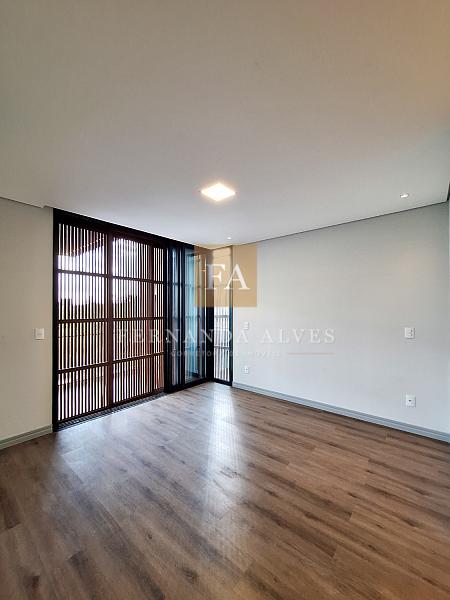 Na área íntima estão distribuídas três suítes, incluindo a suíte master com closet e um charmoso brise em alumínio amadeirado na janela, garantindo elegância e privacidade. O imóvel conta ainda com escritório, ideal para rotina de trabalho ou estudo.