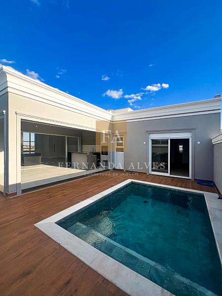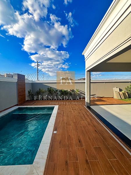 Essa linda Casa oferece ambientes integrados, uma vista para todo o espaço externo da casa já na sua entrada pela porta social. Pé direito alto e muita integração também com espaço externo dá a essa casa a sensação de amplitude. O living pode ser até para três ambientes e está integrado a cozinha interna. Àrea gourmet logo ao lado da cozinha, com possibilidade de fechamento para ser climatizado. E pode climatizar a casa toda porque ela oferece energia fotovoltaica!