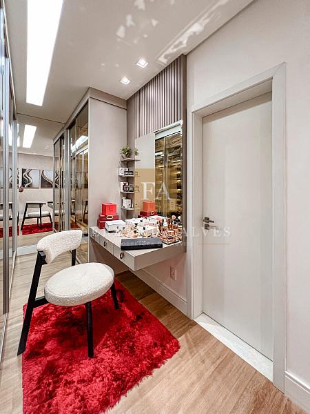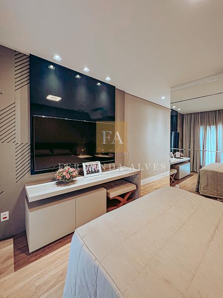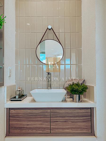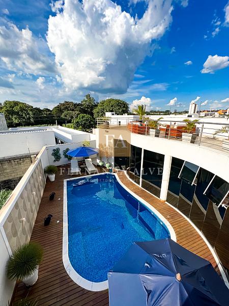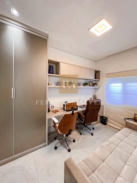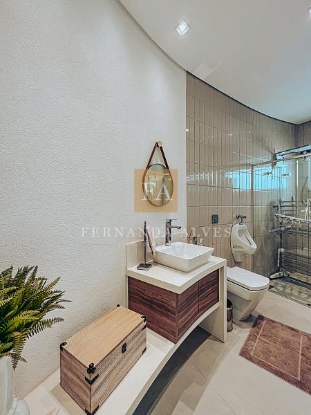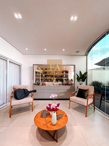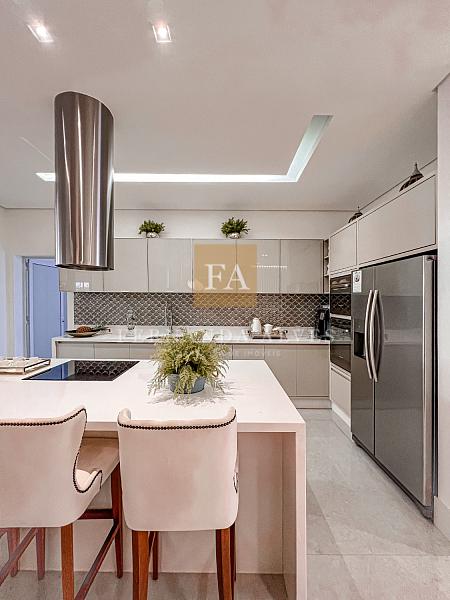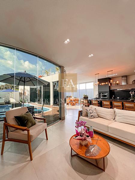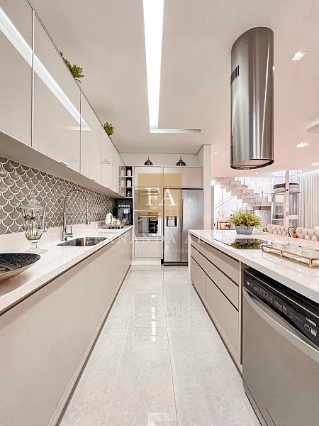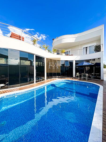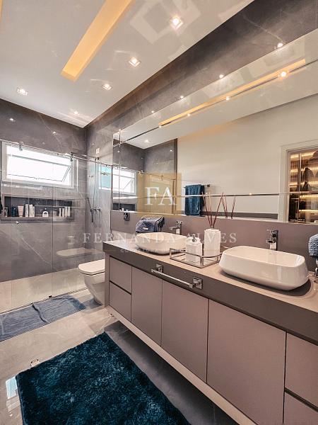 O espaço gourmet da casa é um show a parte, muito amplo, também com três ambientes: estar com cristaleira, espaço almoço e estar próximo á piscina. Um extensa bancada com chopeira, churrasqueira a carvão, refrigerador e cervejeira, ambiente todo climatizado e completo em marcenaria, ainda oferece depósito e banheiro da piscina. Linda piscina aquecida e com mobiliário externo.