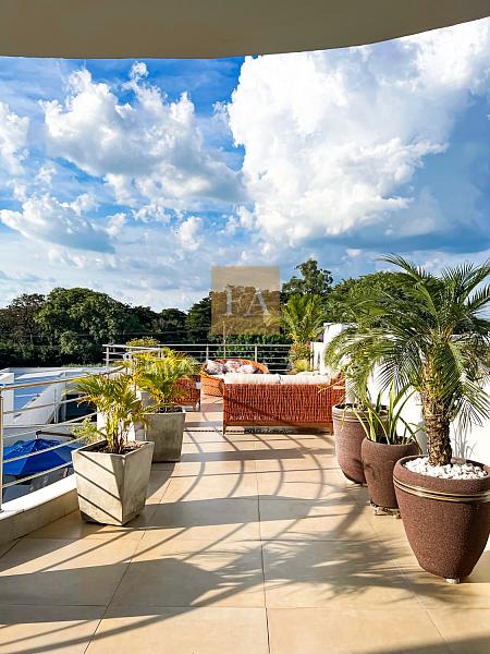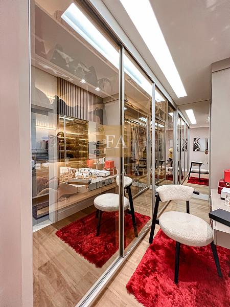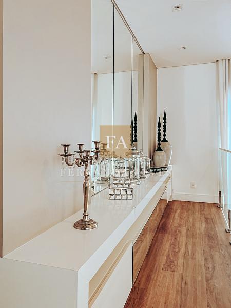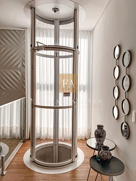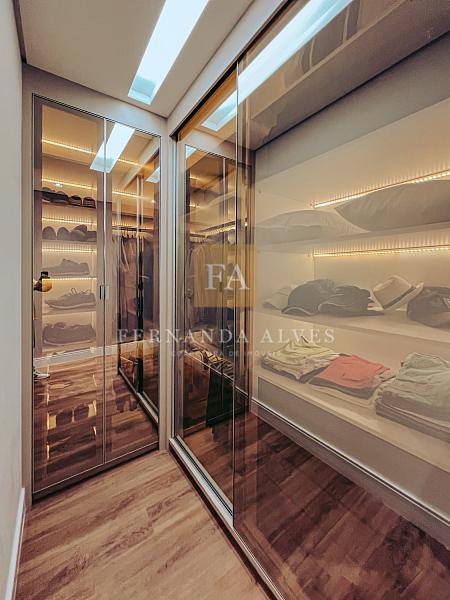 No piso superior ficam os quatro dormitórios e o acesso é pela escada ou elevador. São 2 suítes com closets e dois quartos com banheiro social. Os dormitórios oferecem ótimo espaço e varandas. A propriedade possui sistema de geração própria de energia além do sistema de aquecimento solar, está climatizada em todos os ambientes e será negociada com todo mobiliário.