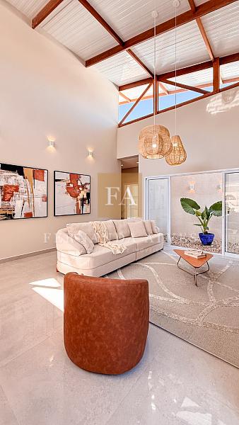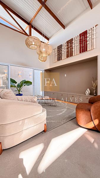 Muita luz natural, proporcionada pelo pé direito com detalhes em vidro e a luz da manhã refletindo levemente sobre o living. Muita ventilzação cruzada, proporcionada pelas portas em vidros que se abrem para área de jardim e espaço externo.